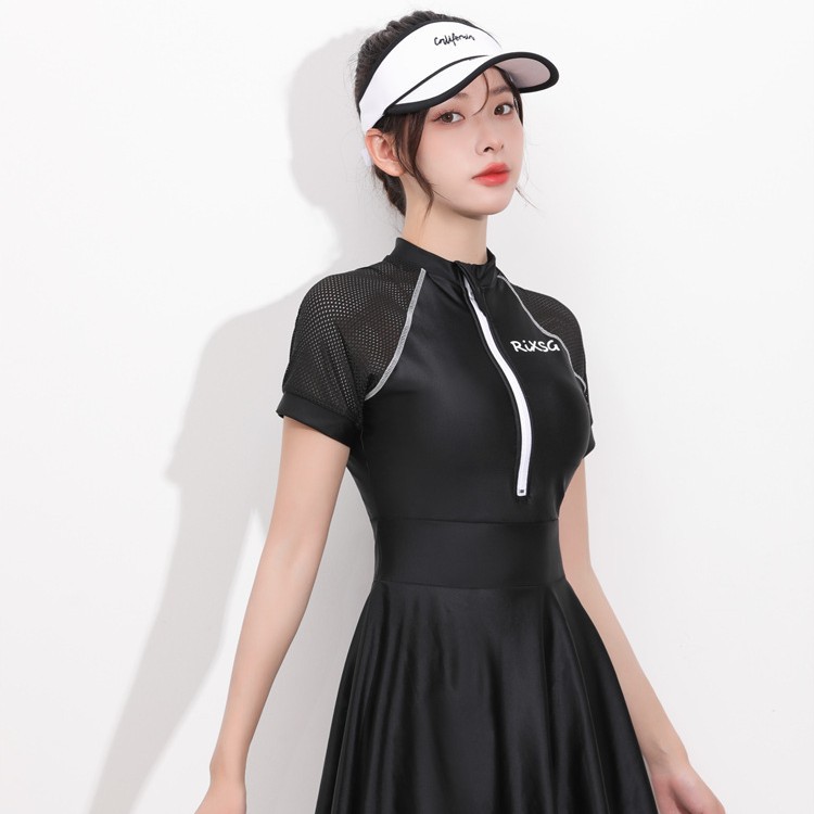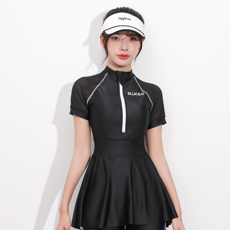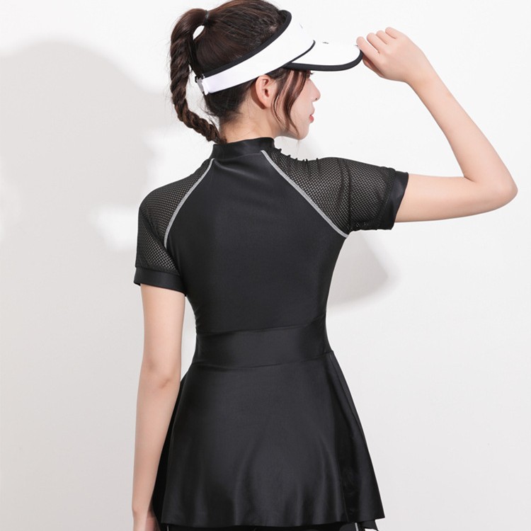速干保守分体裙式短袖五分裤两件套遮肚显瘦泡温泉女运动游泳衣服