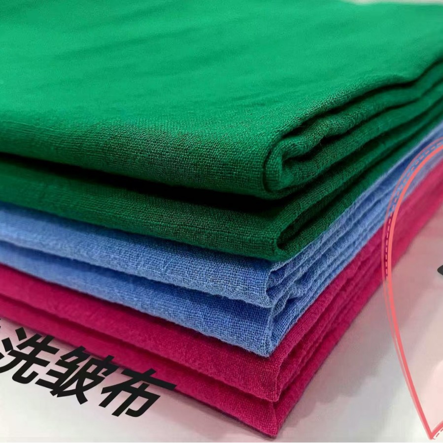 现货素色童装衬衫睡衣休闲裤纯棉竹节布皱布棉纱布全棉砂洗棉皱布