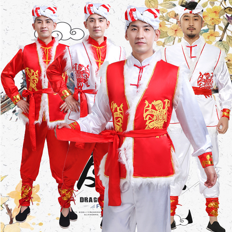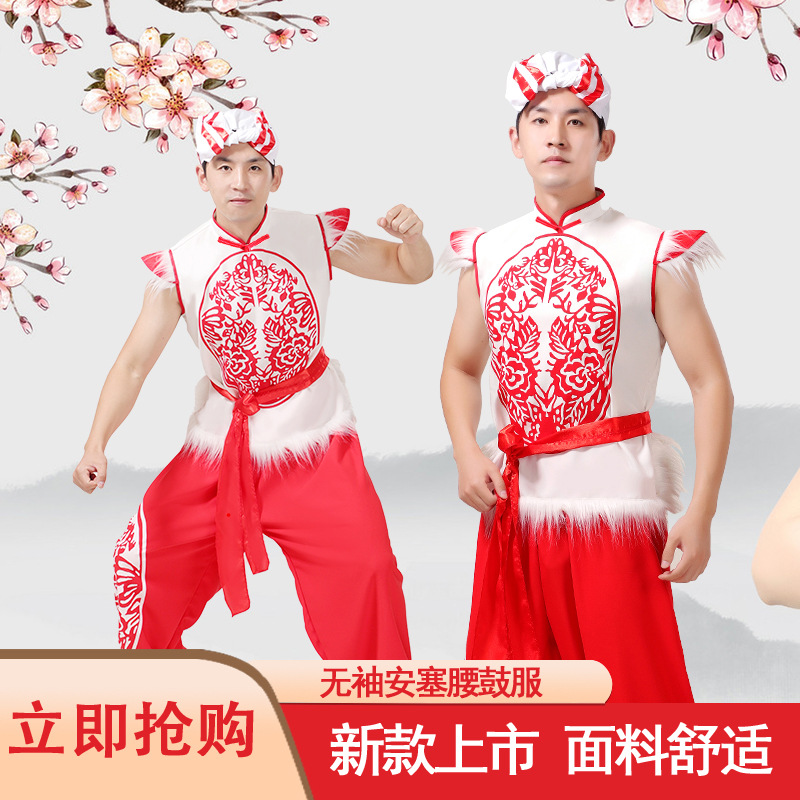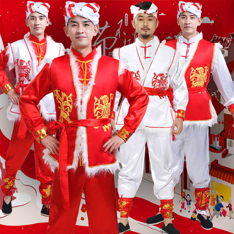新款陕北民歌安塞腰鼓演出服装民族秧歌舞打鼓服舞龙舞狮服男女装