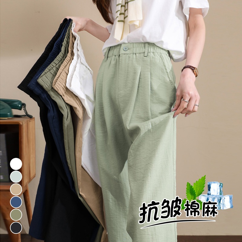 2025夏季新款亚麻九分裤冰丝棉麻哈伦裤高腰宽松休闲裤女都市风