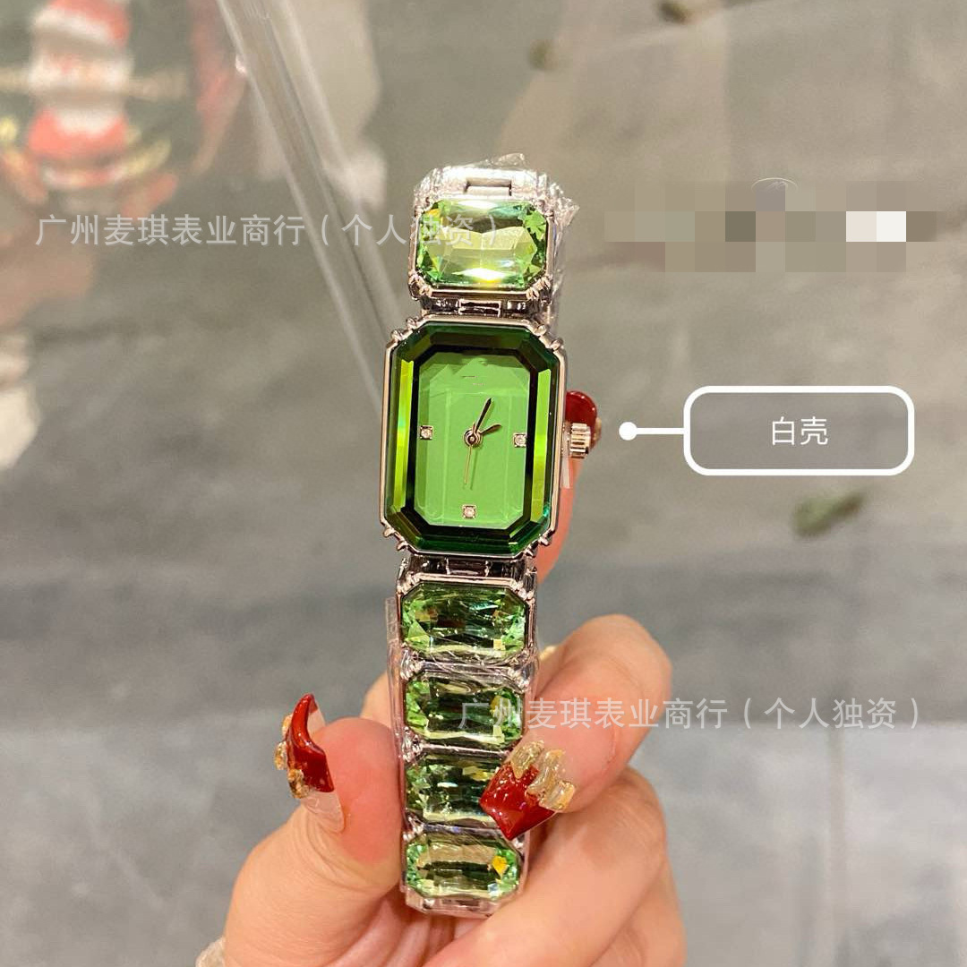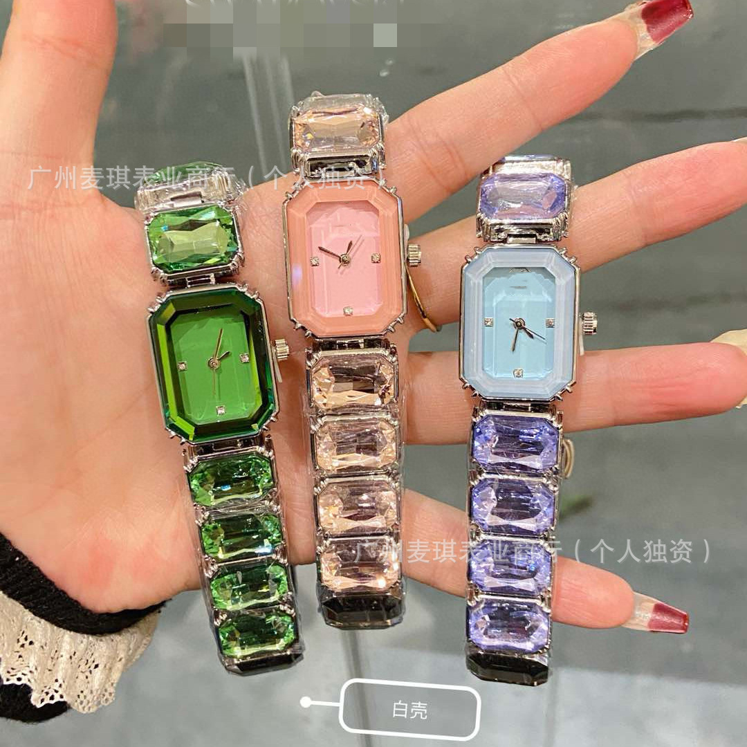 新款施家小方糖大宝石彩色祖母绿小众高级感轻奢时尚手链女表批发