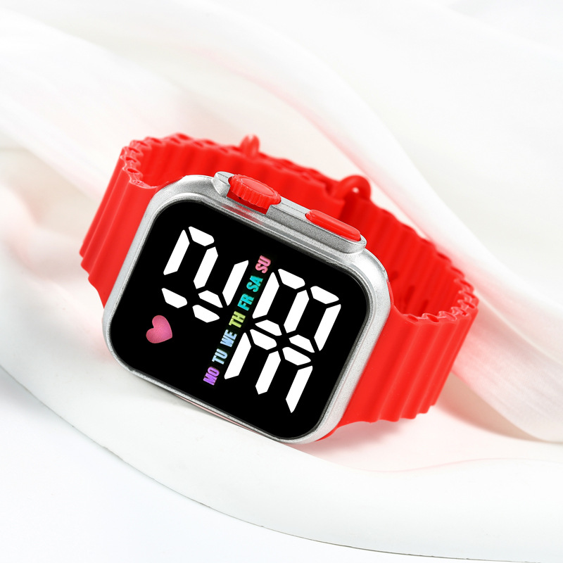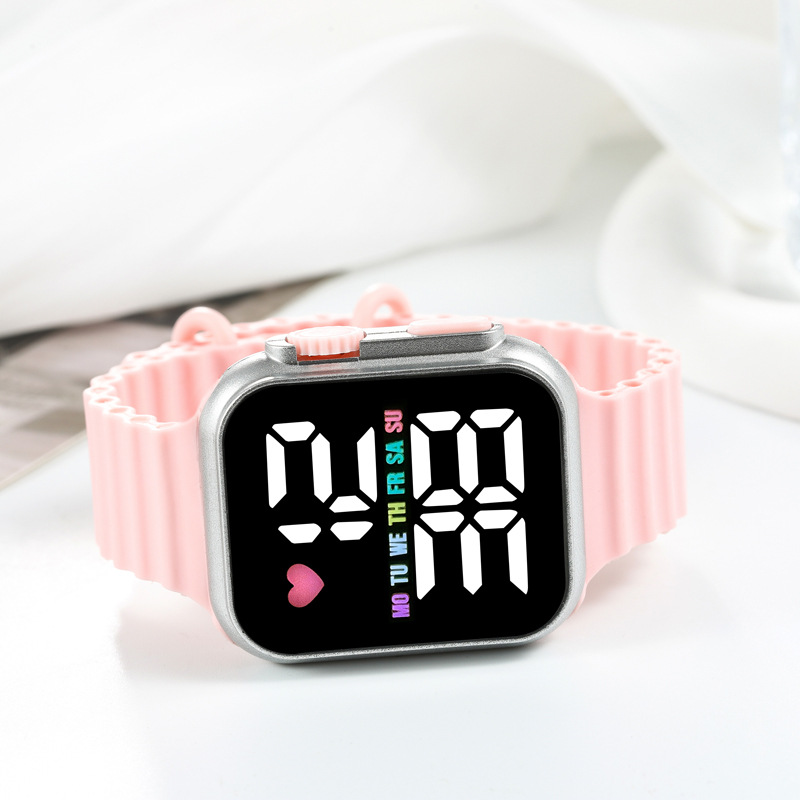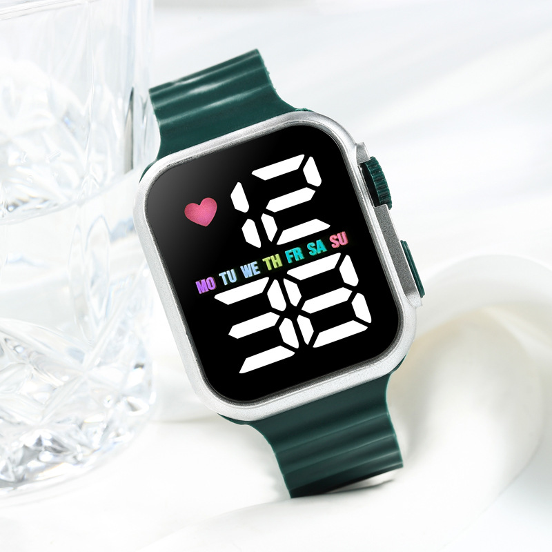 新款跨境时尚韩版LED学生电子手表方形数字显示男女户外运动手表