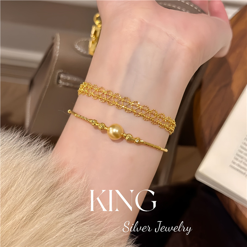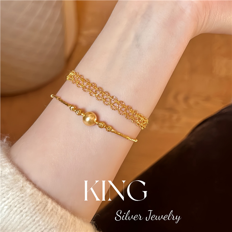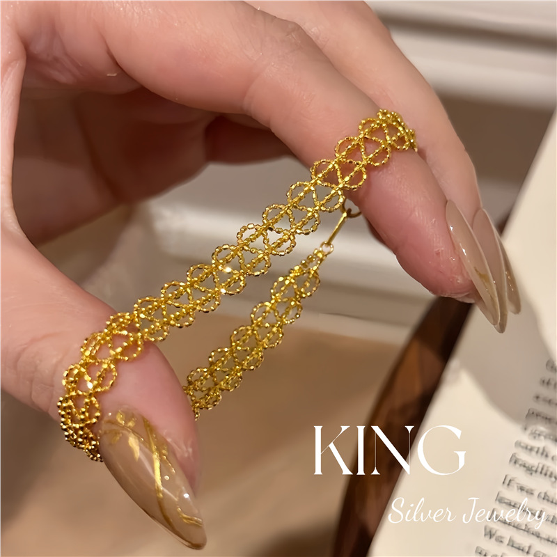 634缎带波纹蕾丝手链|S925银镀金女复古时尚轻奢精致手链