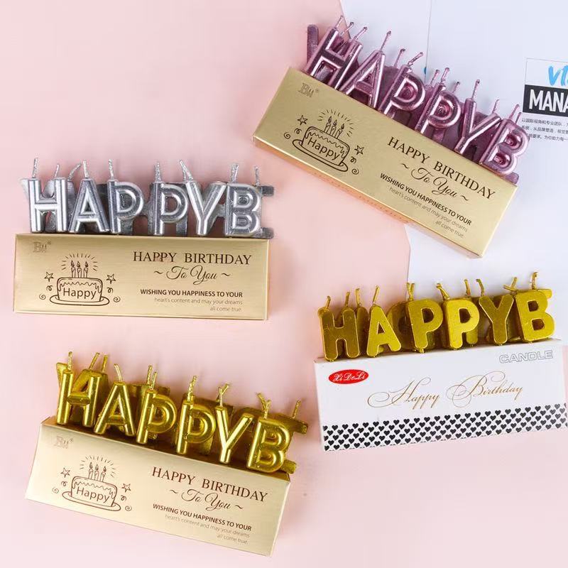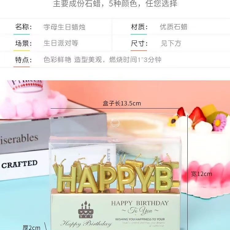 创意生日蛋糕蜡烛金色银色 HAPPY BIRTHDAY字母蜡烛派对蜡烛装饰