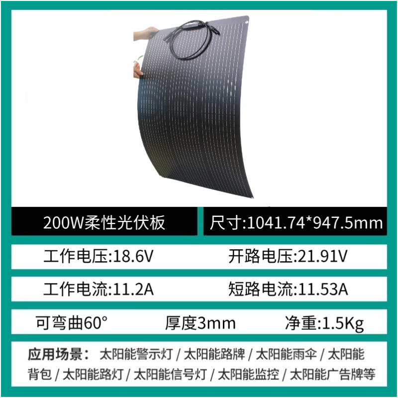 柔性太阳能板200W光伏组件户外发电系统房车露营充电板高转换效率