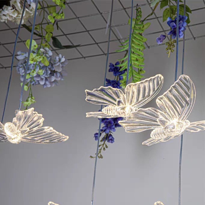 新款婚庆场地布置装饰灯 亚克力发光灯串10头蝴蝶吊灯 厂家直供