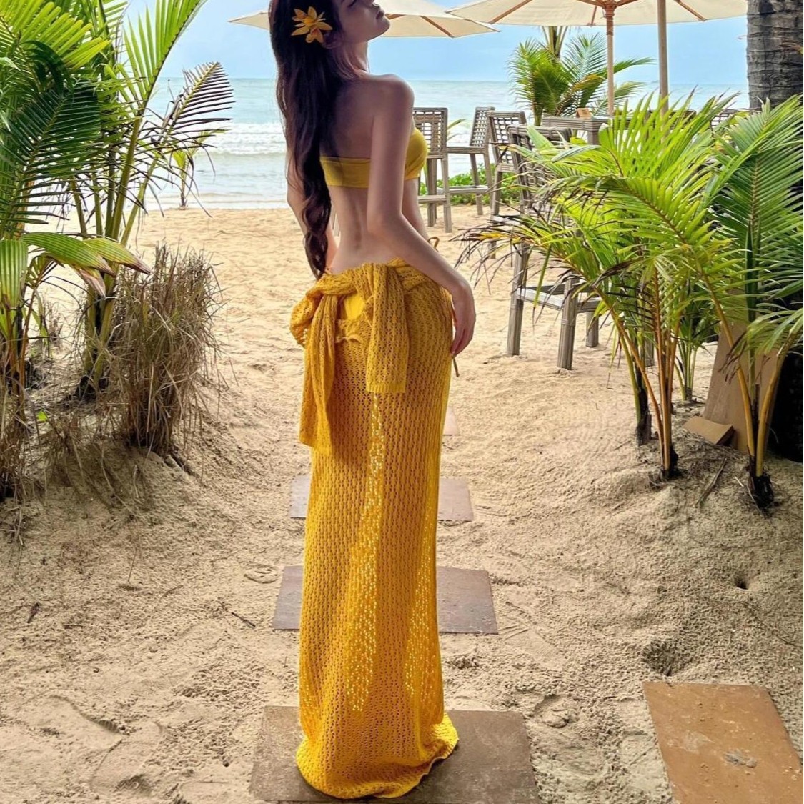 颜色黄色比基尼+裙子