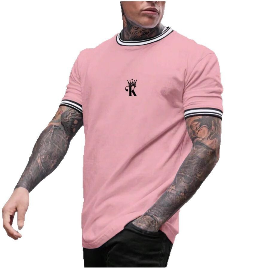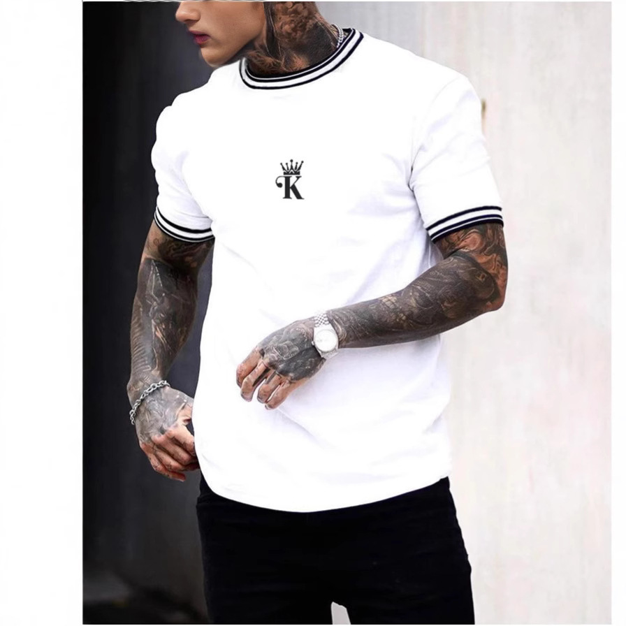 亚马逊tume热卖款男士T恤休闲男士套头圆领K字母印花短袖
