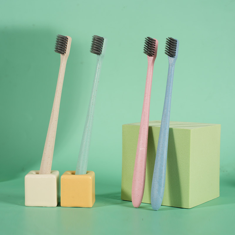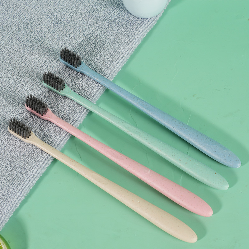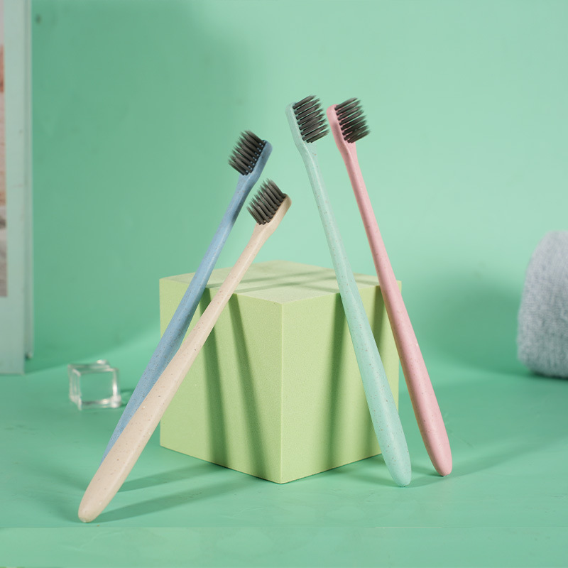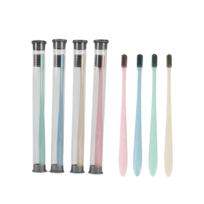 成人软毛牙刷秸秆小麦牙刷扁柄成人款竹炭便携套管装小头软毛牙刷