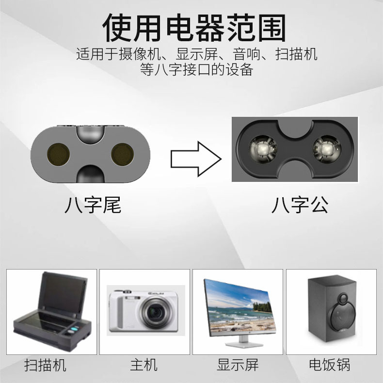 规格型号日规八字尾电源线