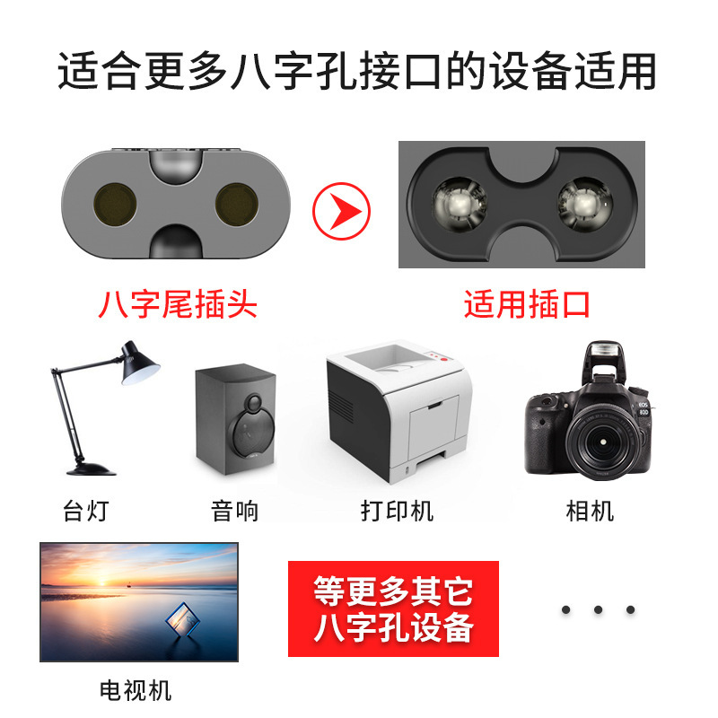 3C认证纯铜国标8字尾电源双孔插头线两孔2芯八字尾通用