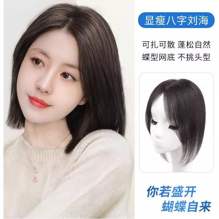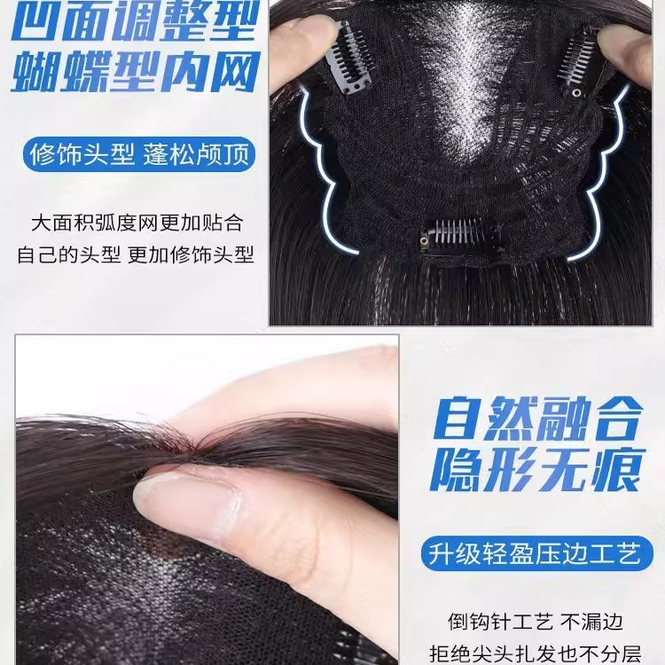 蝶型瑞士网假发片女士头顶真人发一片式补发长直发手织工艺轻盈
