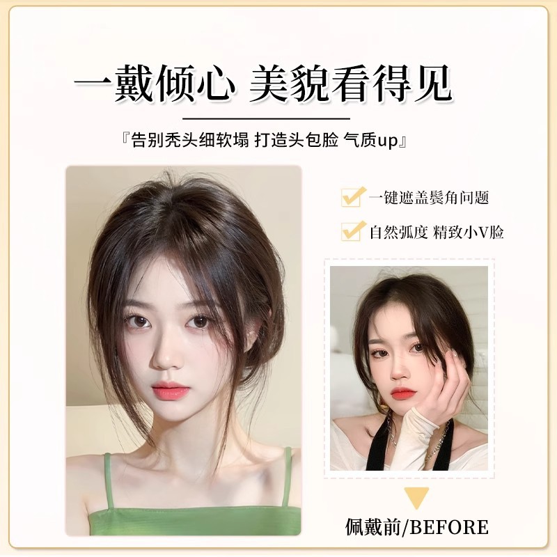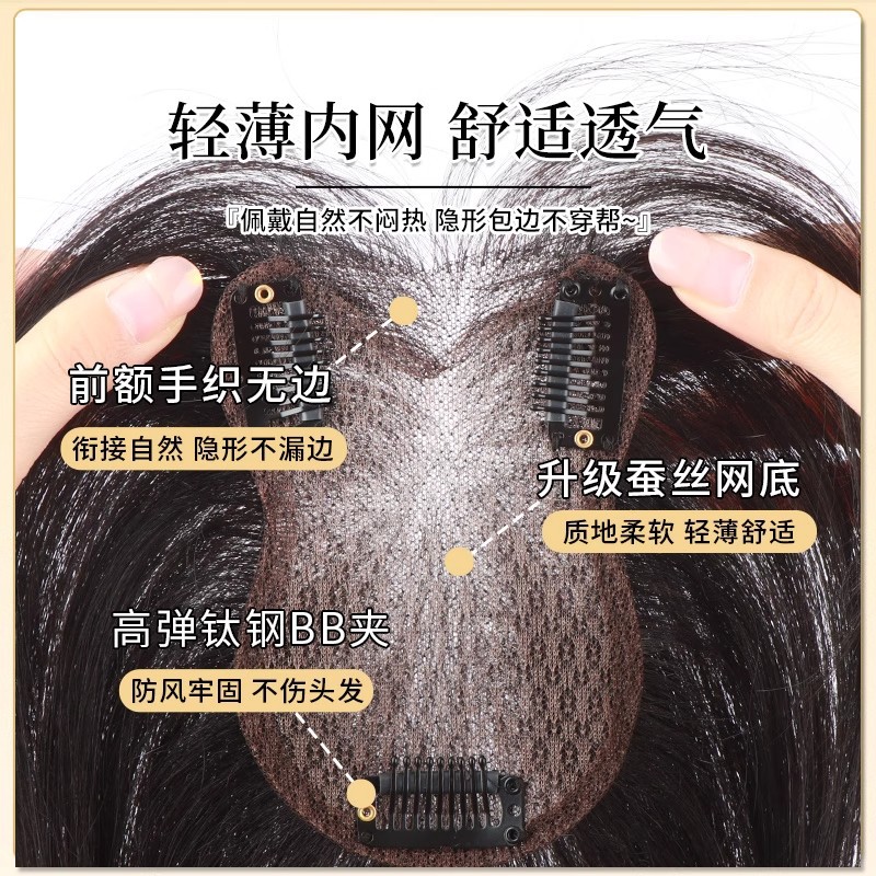 全手织假发女头顶无痕补发增发量全真发前额无边蓬松补发片假发片