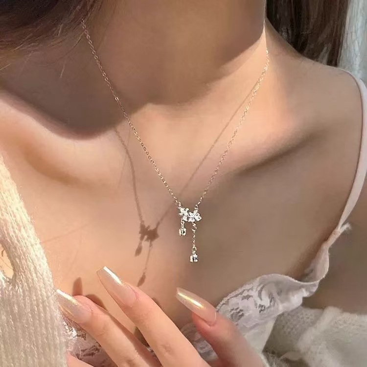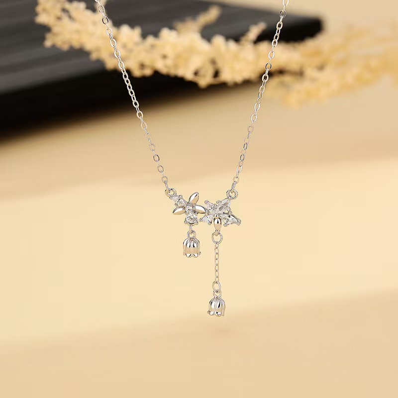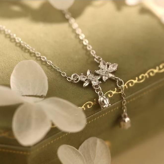 S999足银淡雅花朵铃兰花流苏项链气质高级感小众情人节礼物送女友
