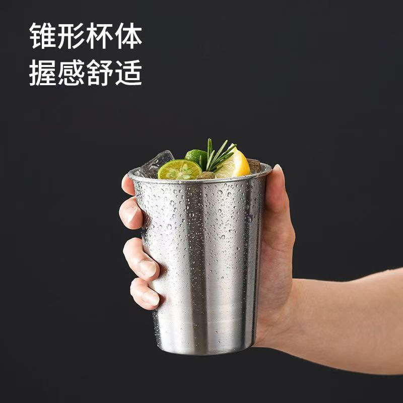 304不锈钢单层杯冷饮杯啤酒杯饮水杯商用茶水杯餐厅果汁杯防摔杯
