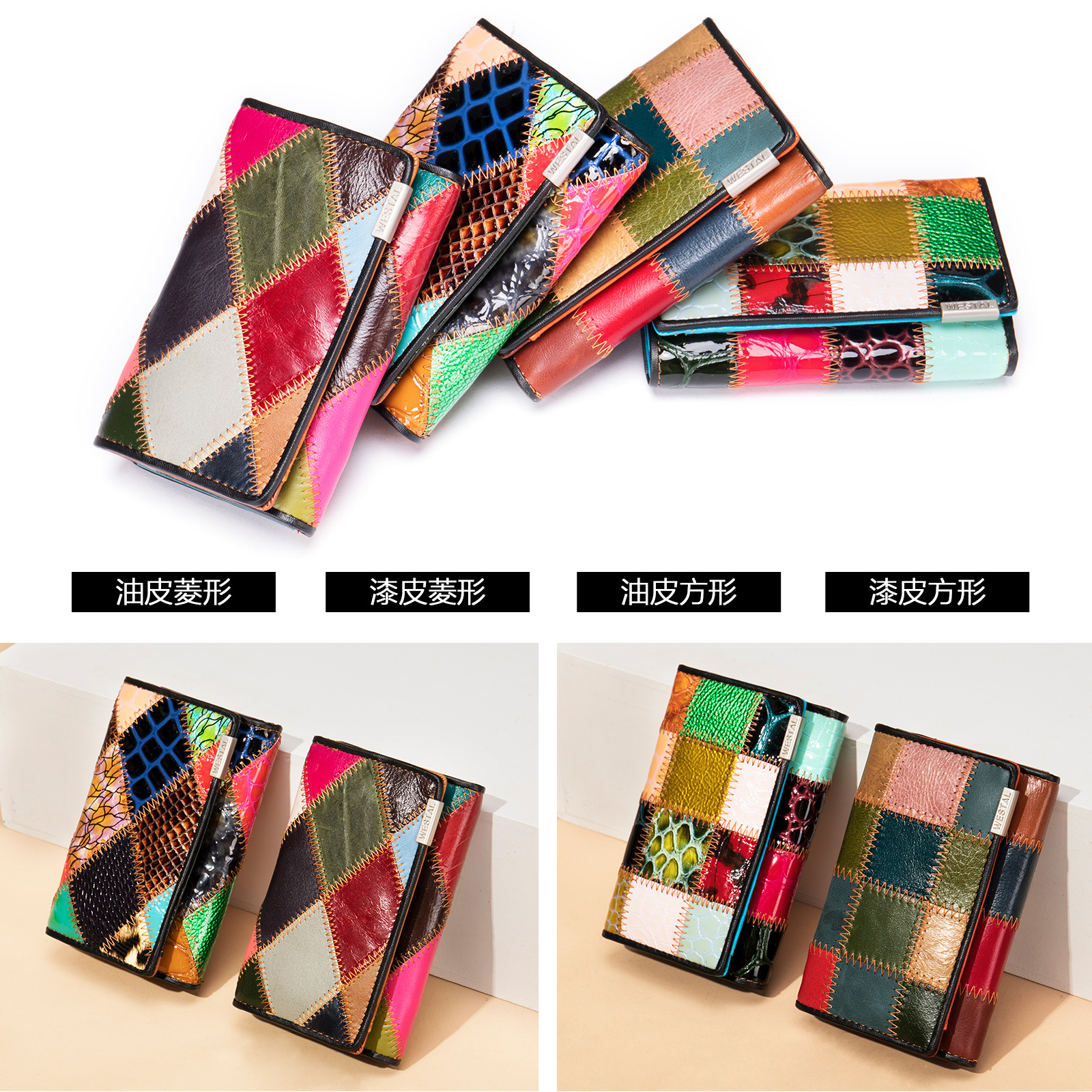 现货欧美新款短款钱包女优雅时尚头层牛皮零钱女士拼色钱包