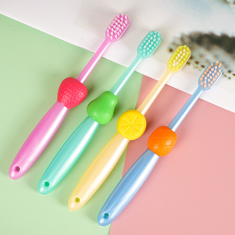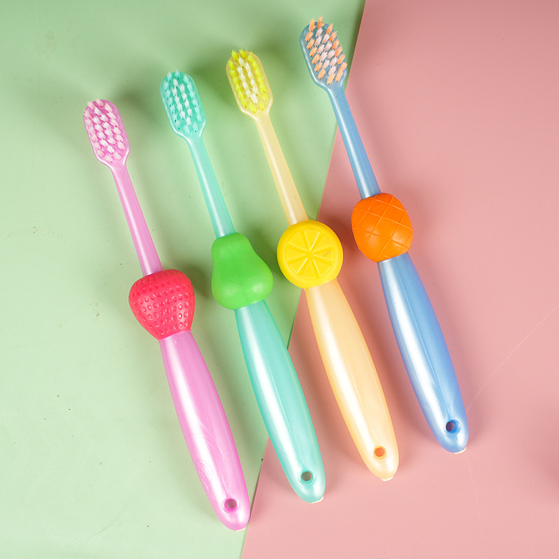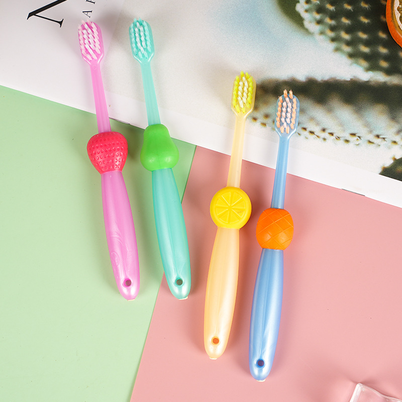 儿童水果软毛牙刷四支装家用儿童软毛牙刷卡通水果手柄儿童牙刷