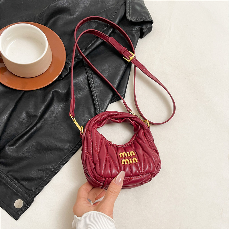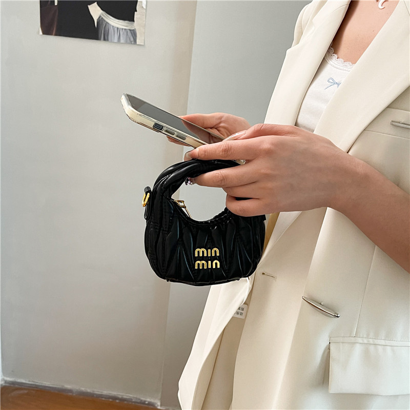夏季时尚褶皱月牙包包女2025新款迷你小拎包高级感单肩斜挎小包潮