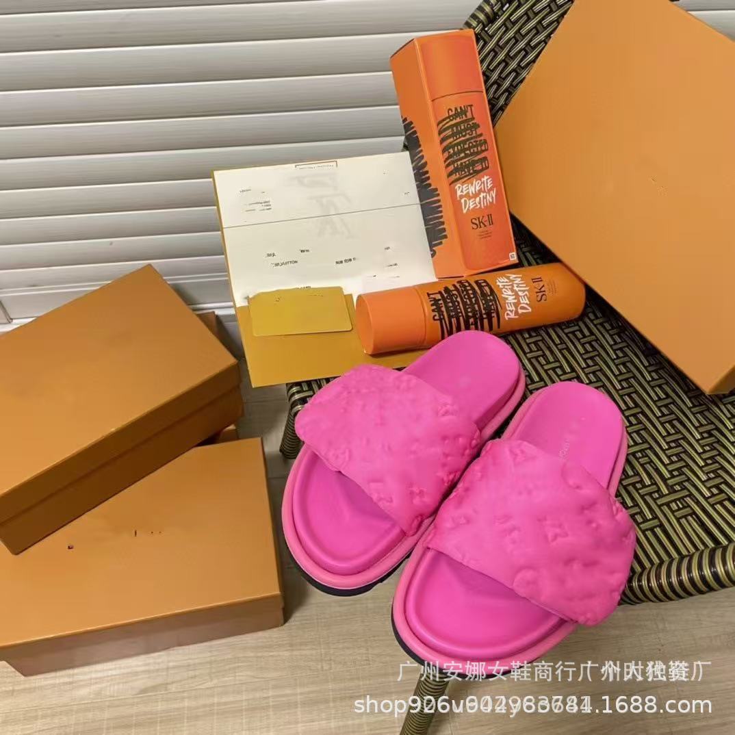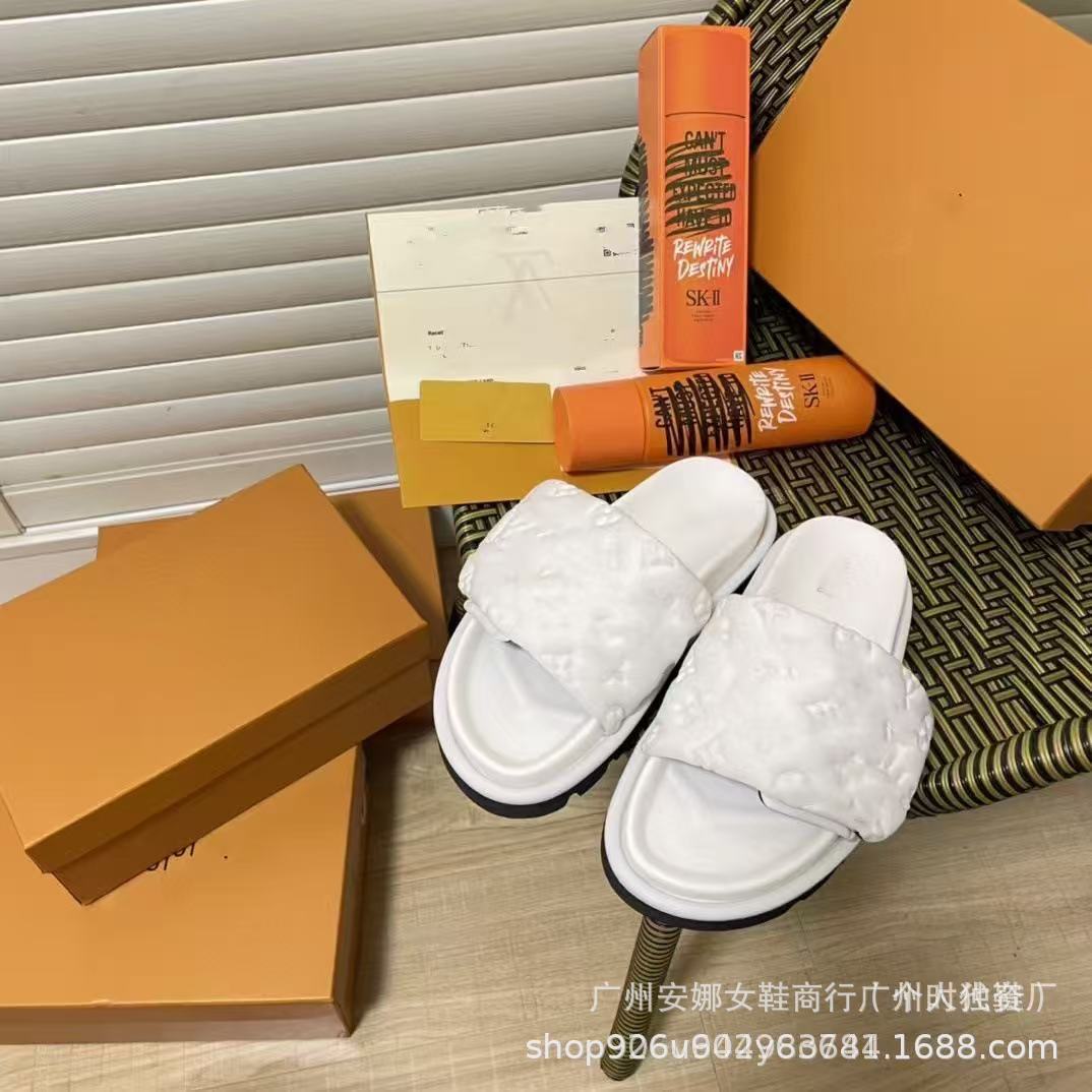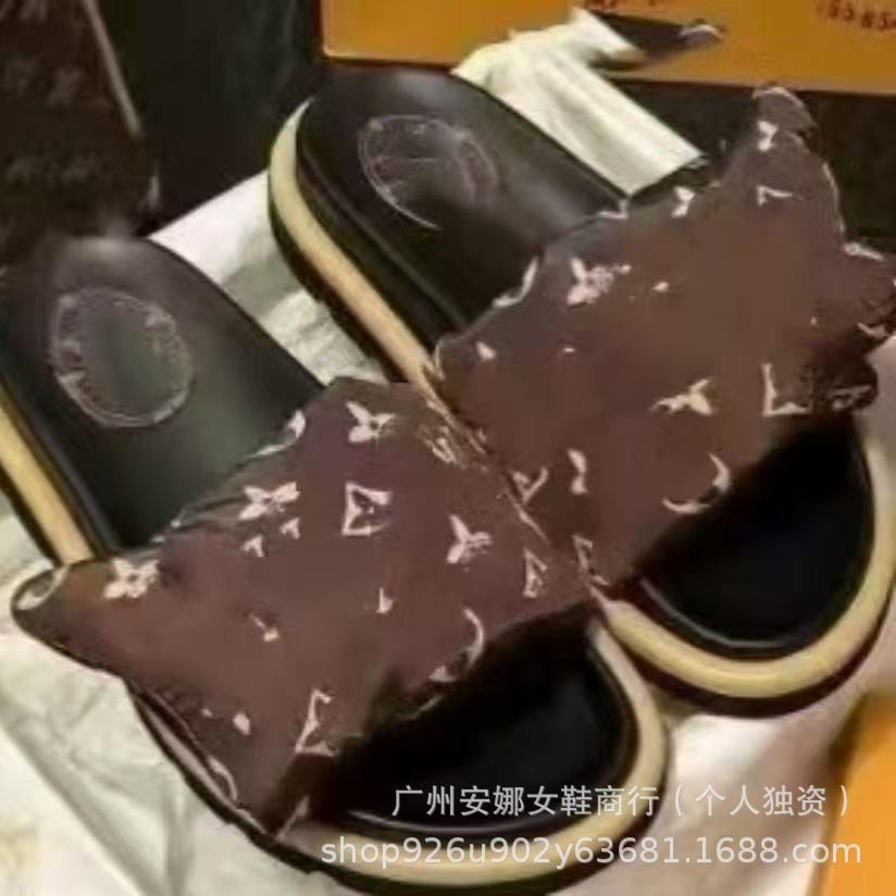 厚底魔术贴拖鞋女2024新款L家外穿时尚防滑牛仔布字母一字拖