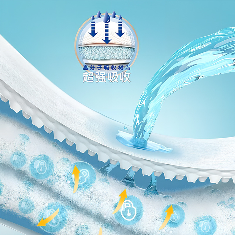 材质优质无纺布、绒毛浆、高分子吸水树脂