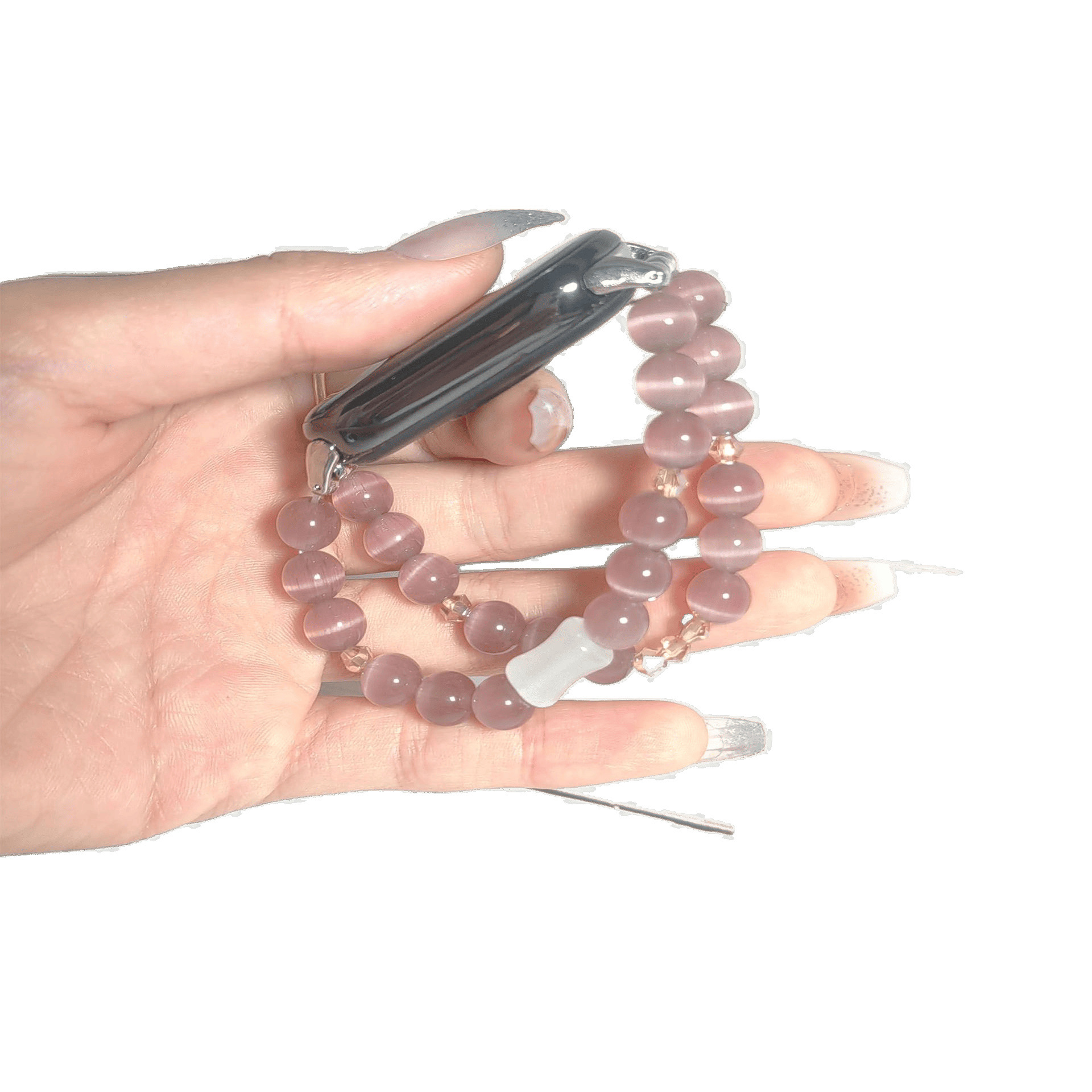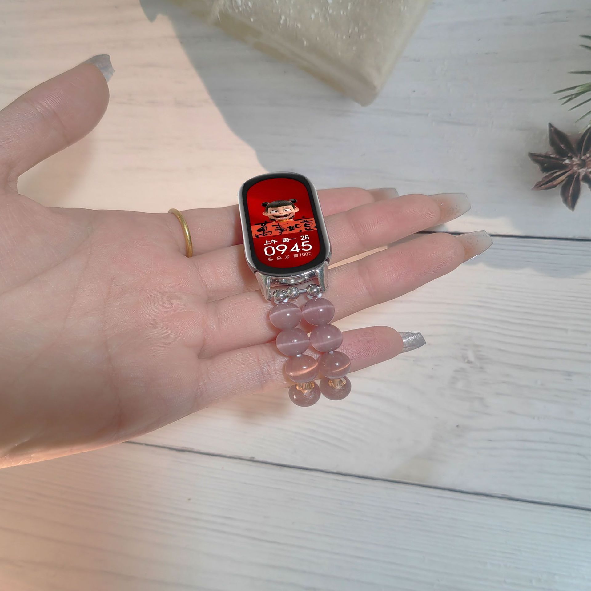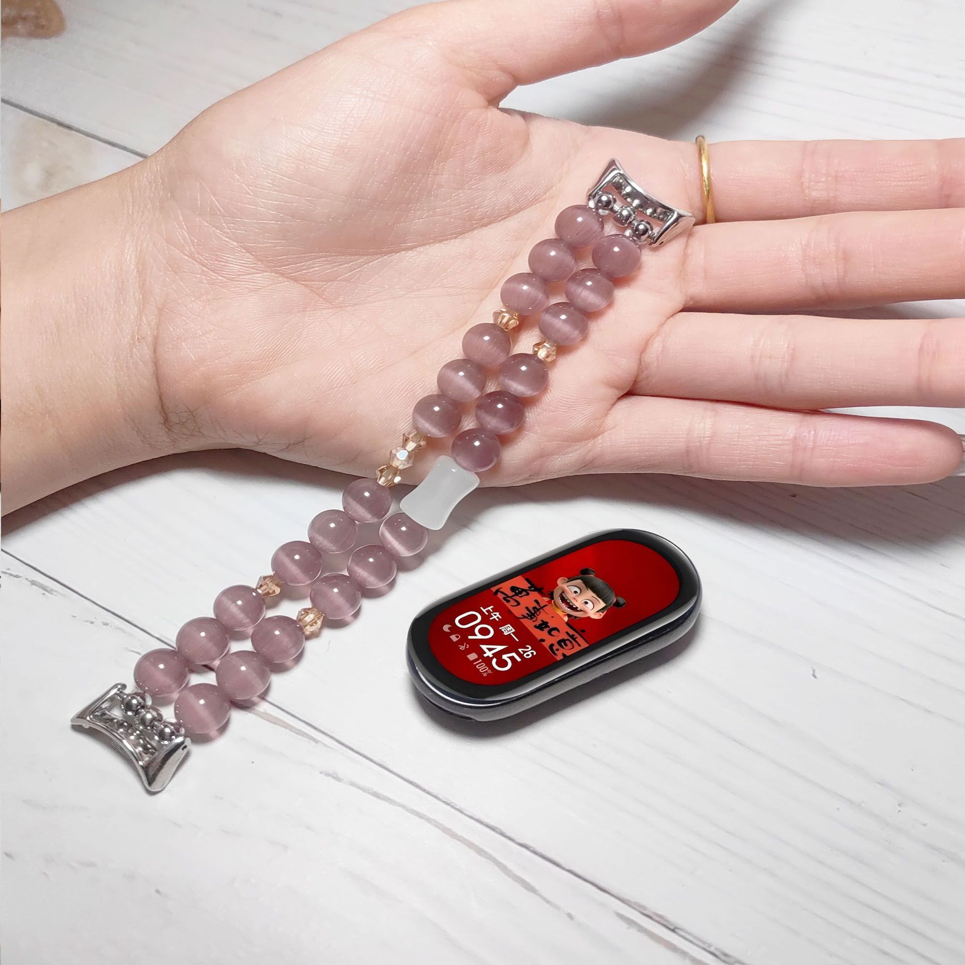 适用小米手环8/9手链pro表带水晶猫眼石红米4/5串珠弹力女款腕带
