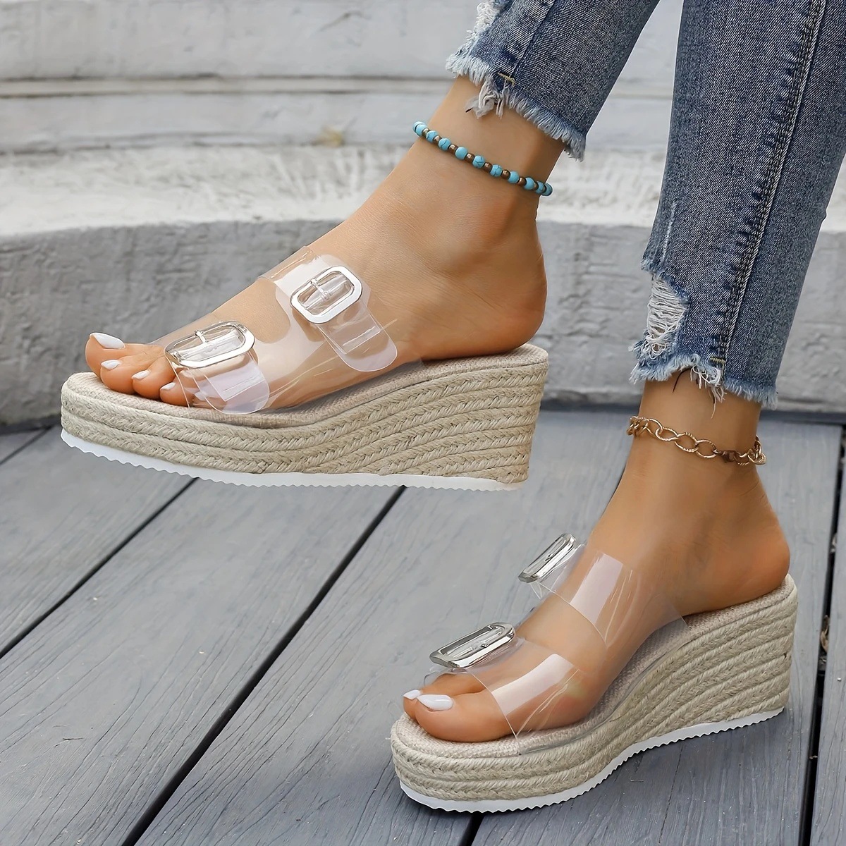 小个子增高超高跟鞋闪面亮片女夏季坡跟透明松糕底厚底沙滩凉拖鞋