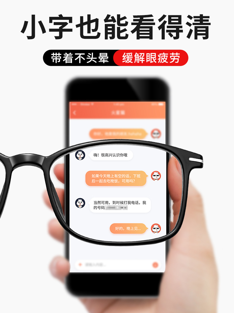 镜框颜色 | 韩国进口-方圆框黑色【防蓝光75度老花】 | 镜框颜色 | 韩国进口-方圆框黑色【防蓝光100度老花】建议46岁以下 |