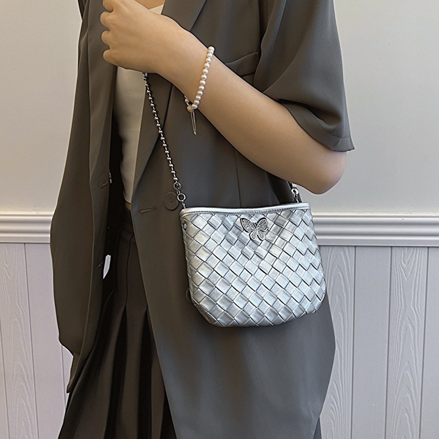 2025热销鲨鱼编织包mini款手拎饺子包纯色个性金属手提包包女批发