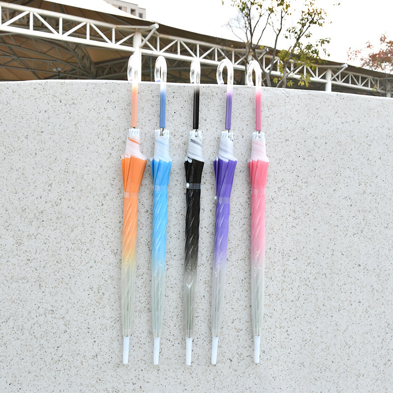 新款透明渐变PE伞高颜值弯钩长柄加厚自动直杆长柄雨伞厂家批发