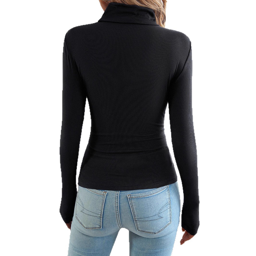 2025亚马逊欧美跨境上衣套头高领秋冬季针织修身女装打底长袖