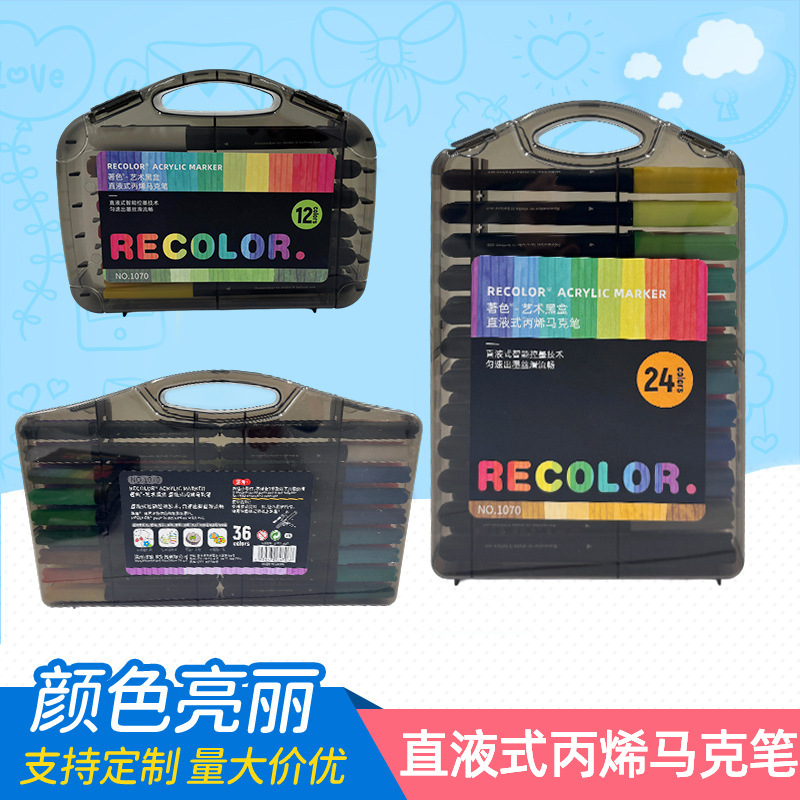 直液式丙烯马克笔儿童12/24/36色水彩笔学生美术用可叠色文具批发