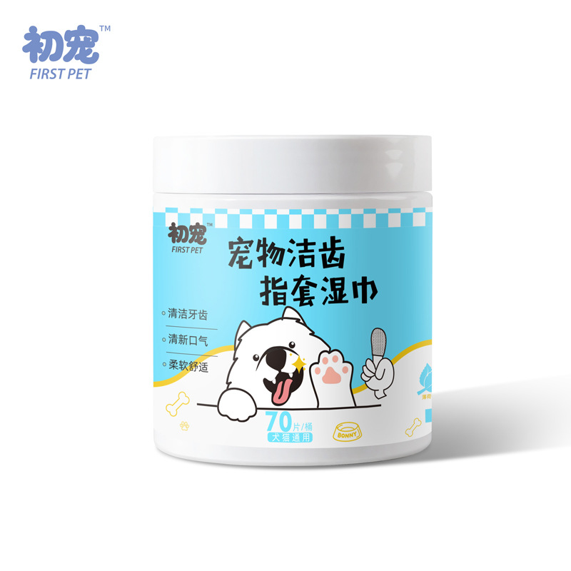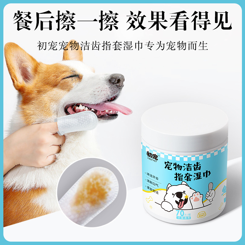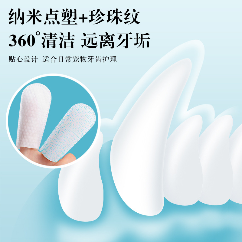 跨境宠物洁牙指套除口臭猫咪狗狗一次性清洁牙齿口腔刷牙指套湿巾