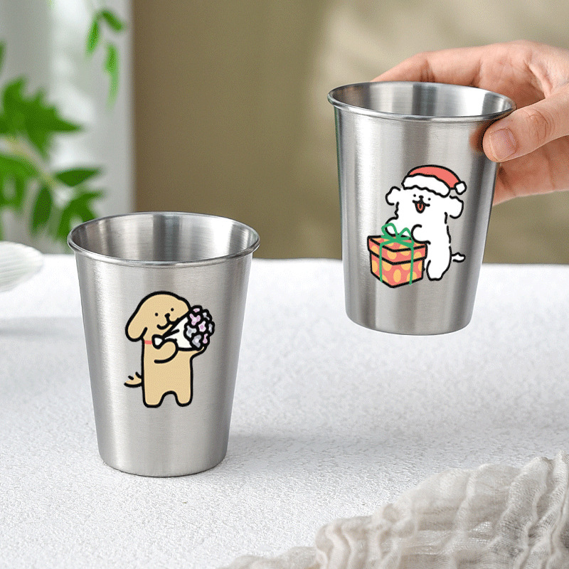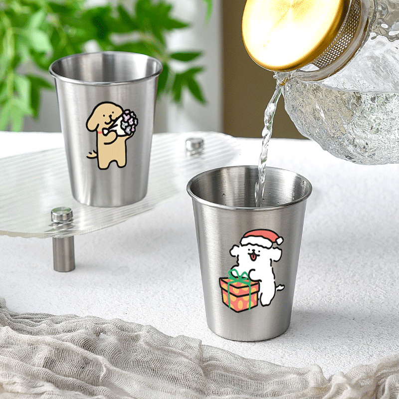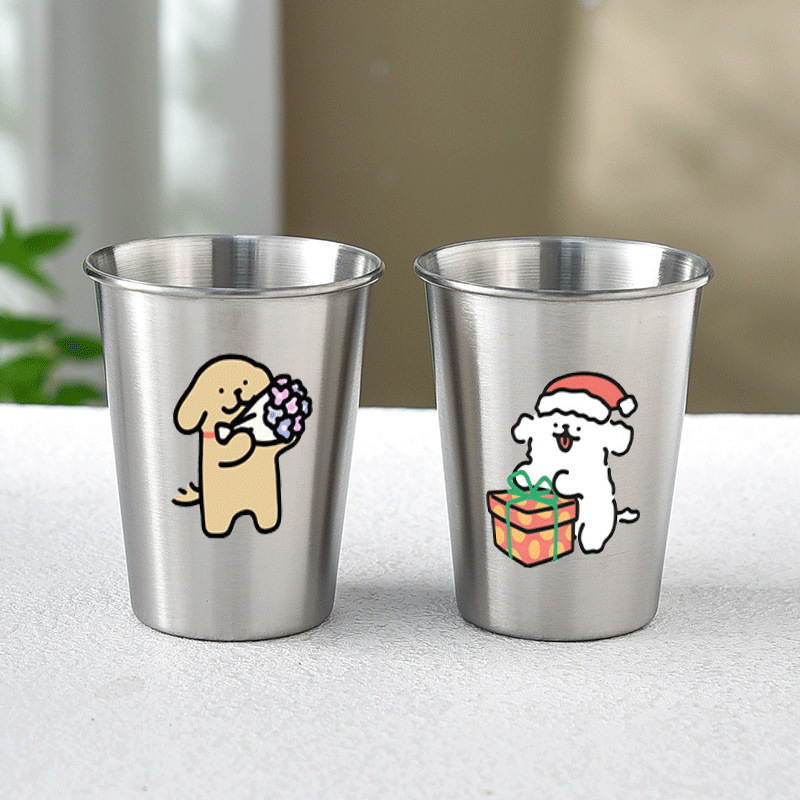 卡通礼物线条小狗漱口杯不锈钢刷牙杯洗漱杯子家用儿童情侣饮水杯