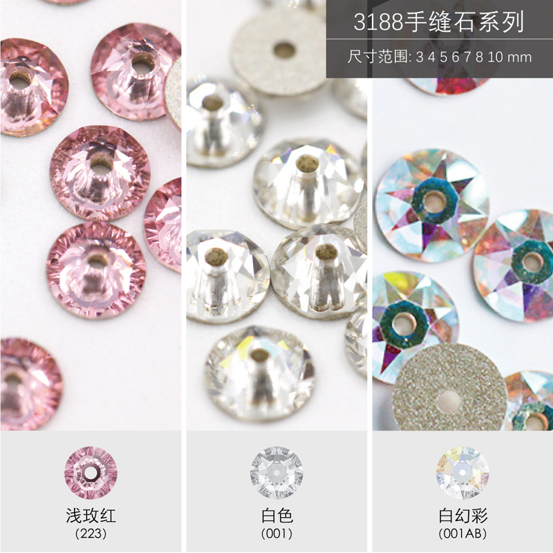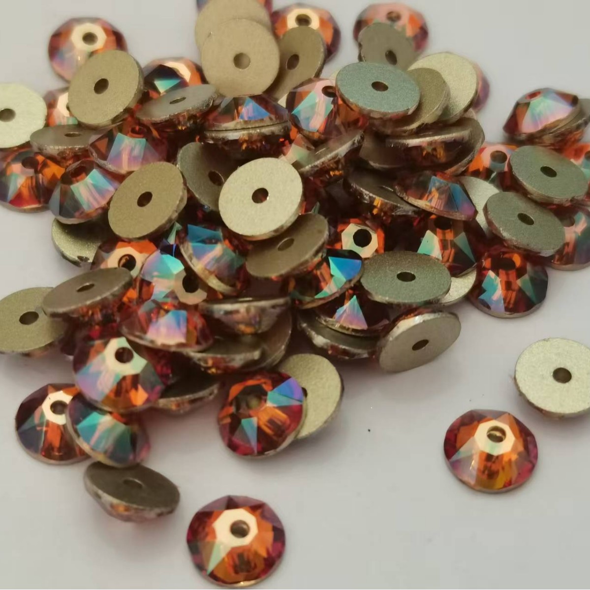8mm八大八小16切面圆形中孔玻璃手缝钻平底钻DIY饰品婚纱装饰辅料