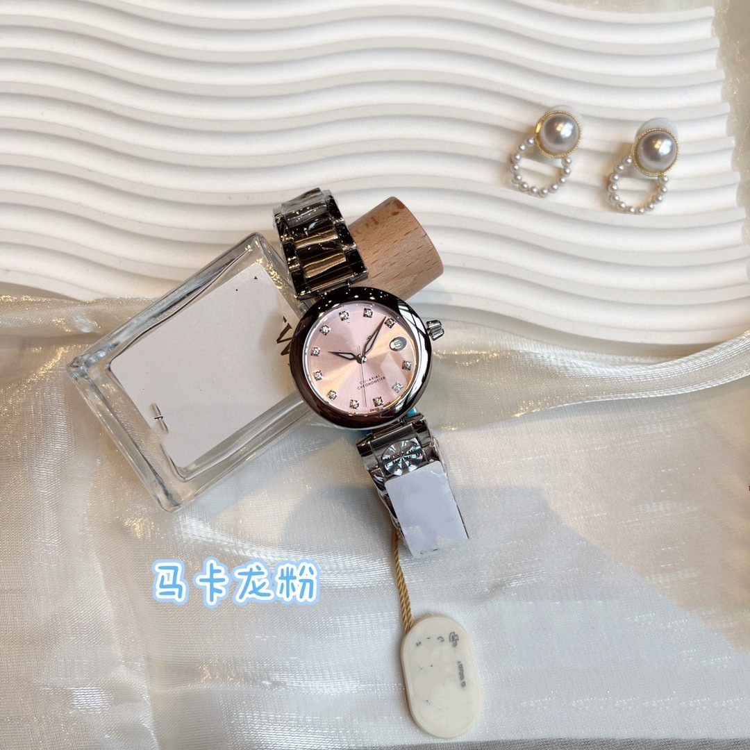 欧家新款超新星女士石英手表马卡龙粉镶钻34mm蝶飞贝母女表蝶飞批