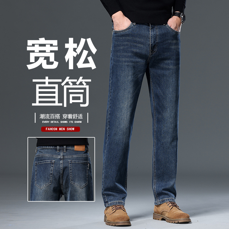 秋冬厚款纯棉牛仔裤男士直筒宽松潮牌休闲男裤2025新款高端裤子男