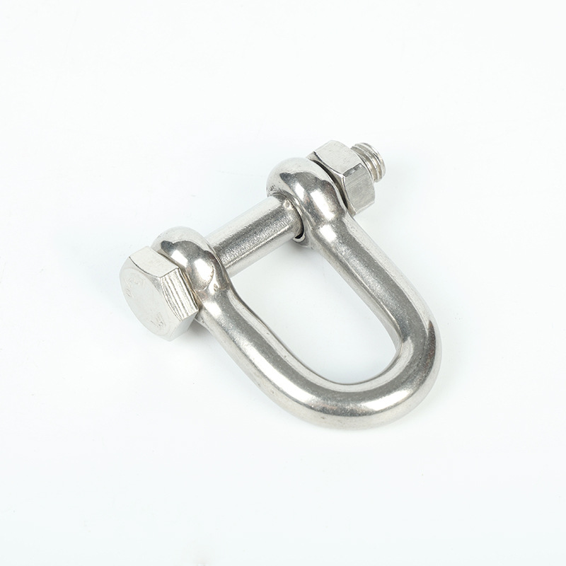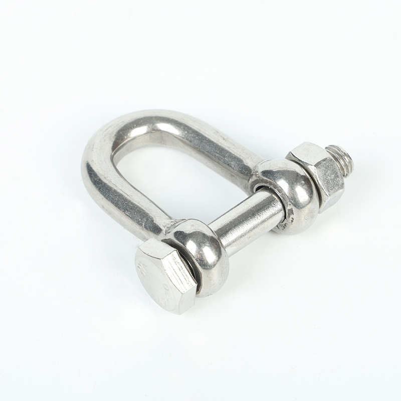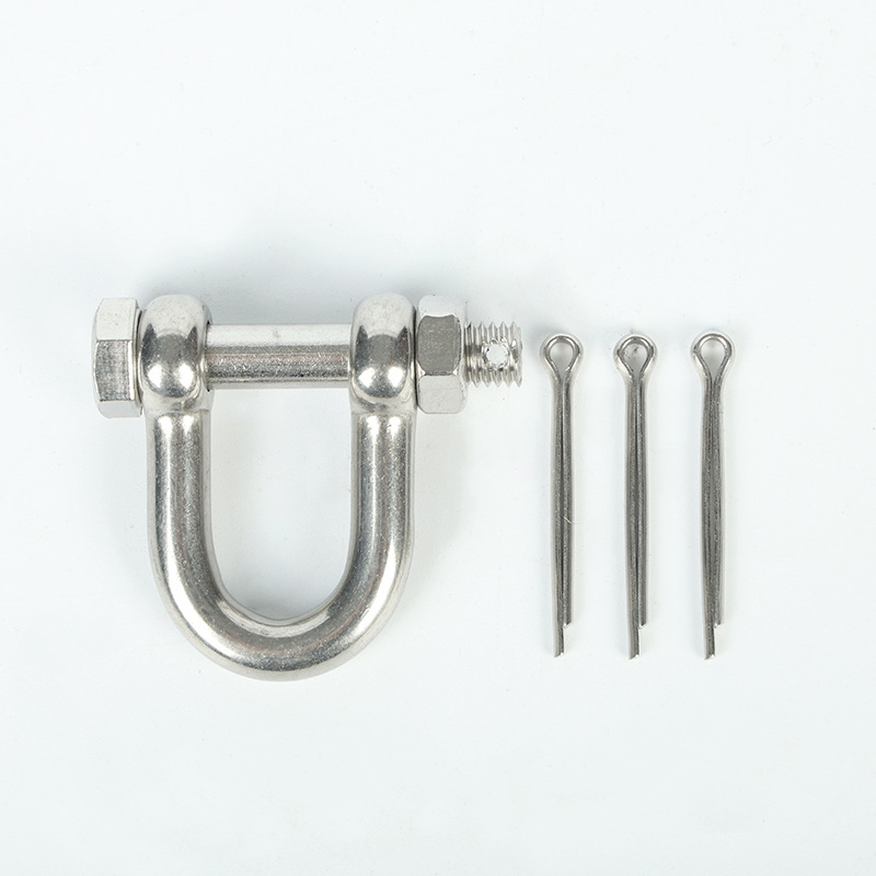 304不锈钢D型保险六角保险卸扣船用起重U形卸扣开口销带螺母卸扣