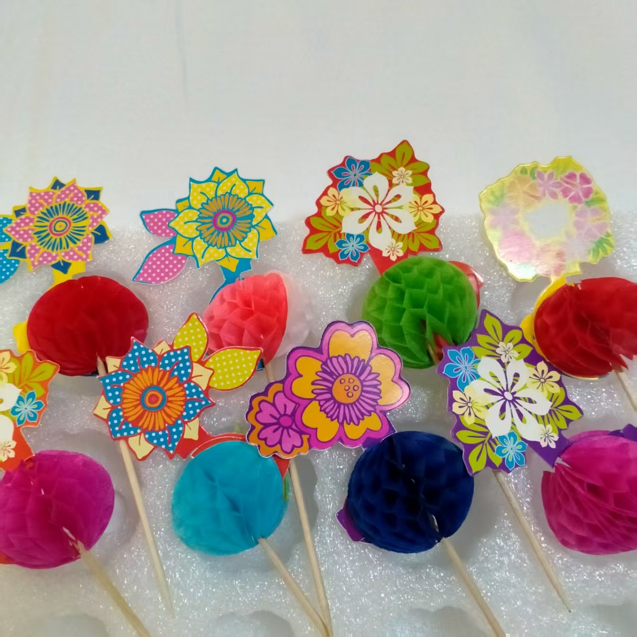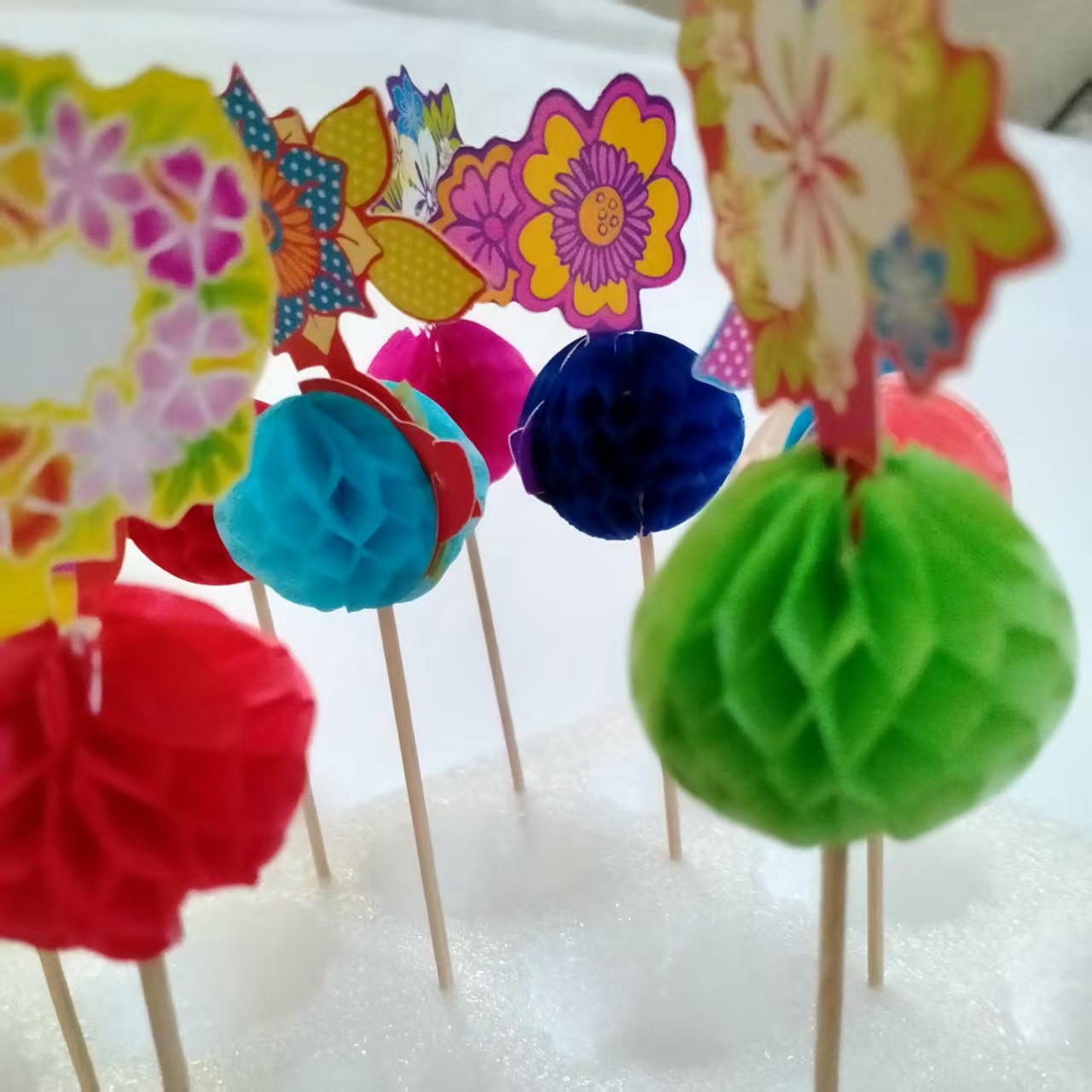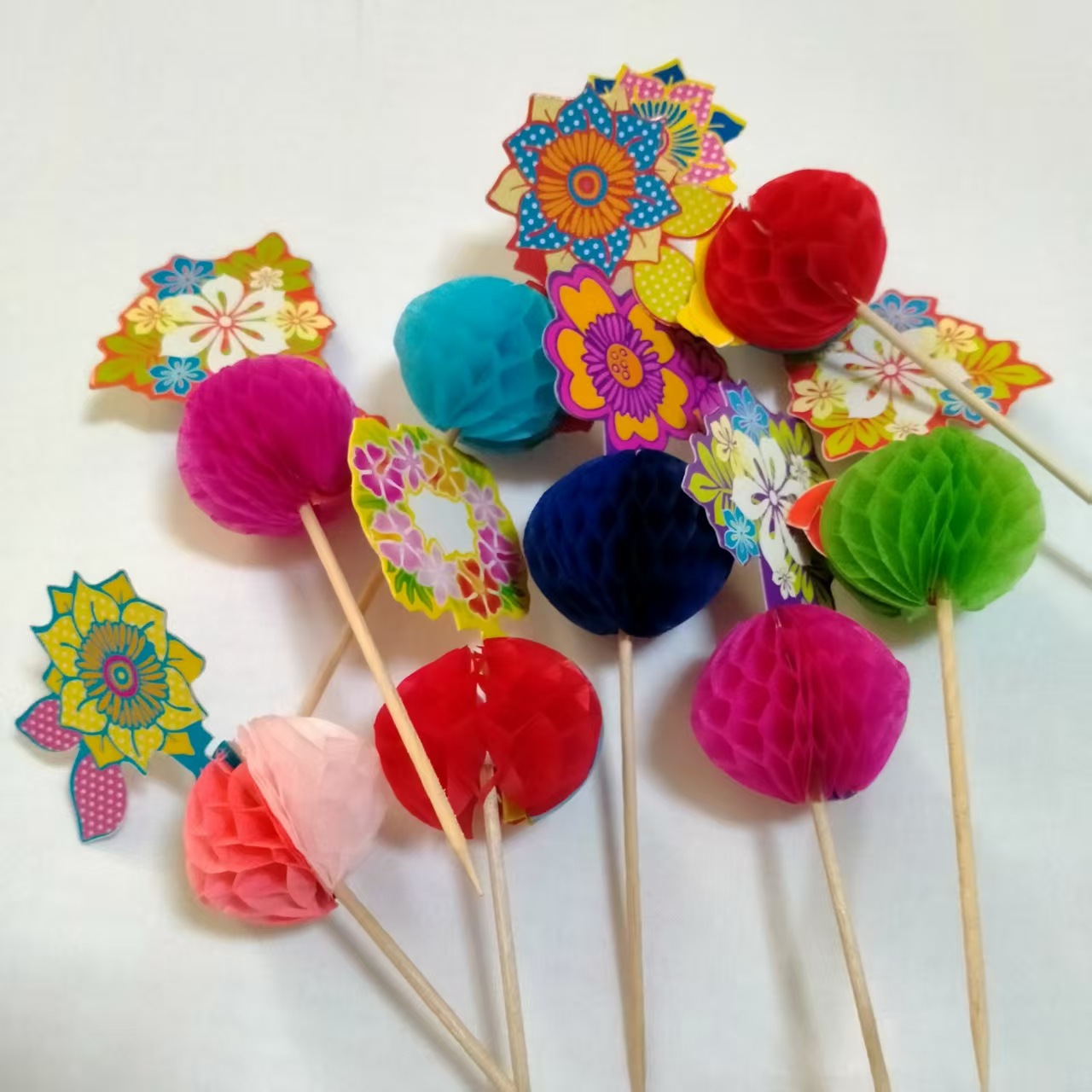 菊花牙签蜂窝纸花卉签鸡尾酒饮料汉堡插签冷艺菜品拼盘装饰摆件