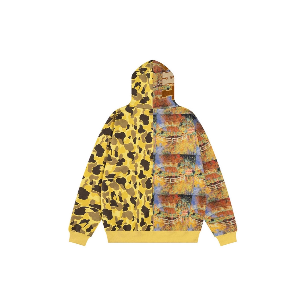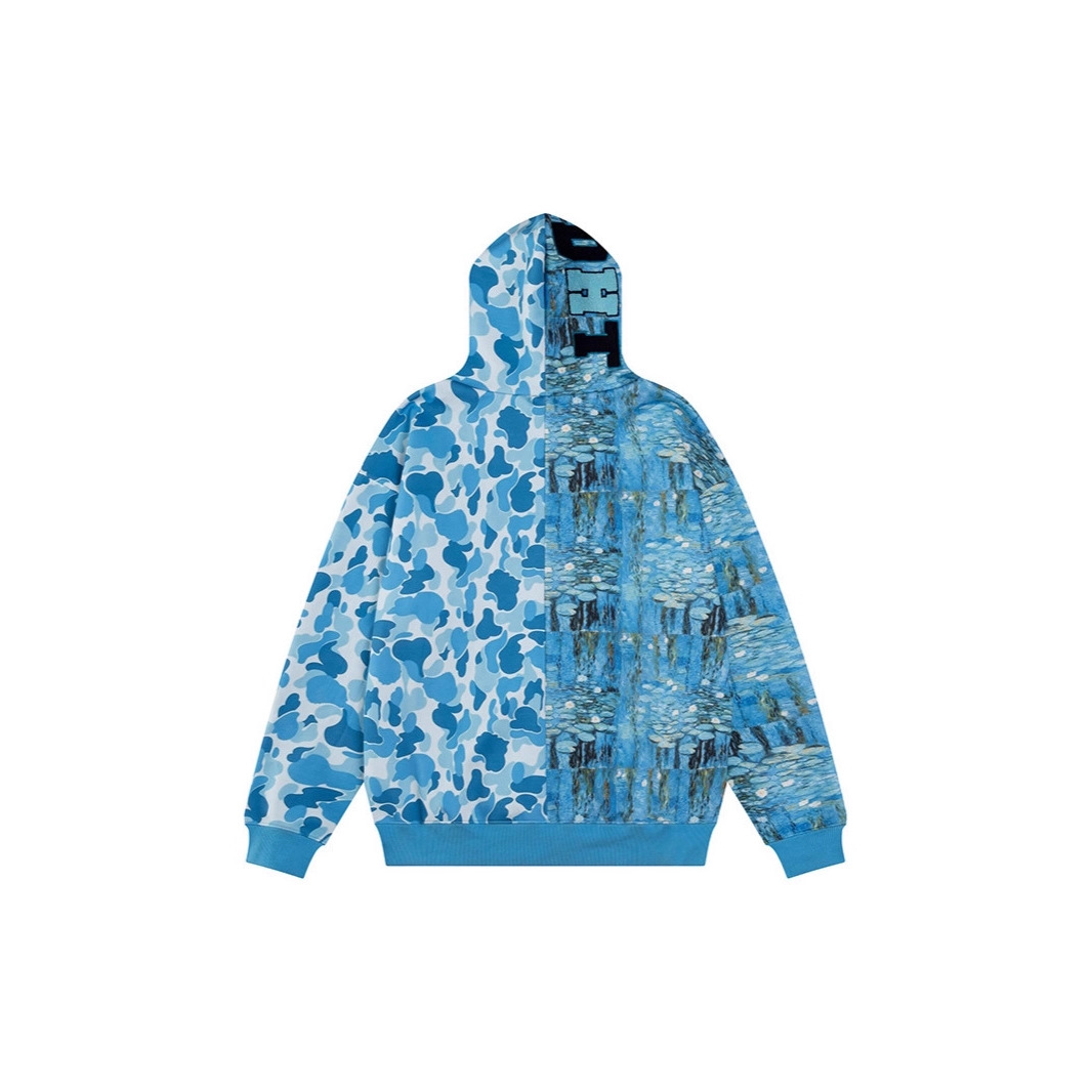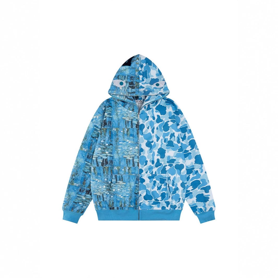2025年美式街头迷彩印花鲨鱼外套秋创意百搭宽松慵懒情侣帽衫上衣