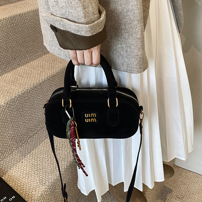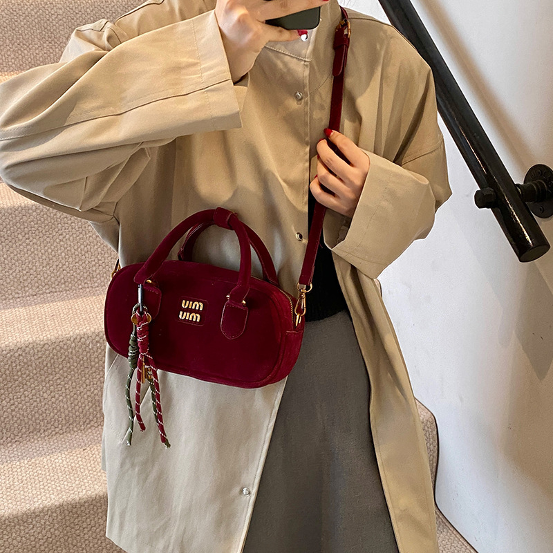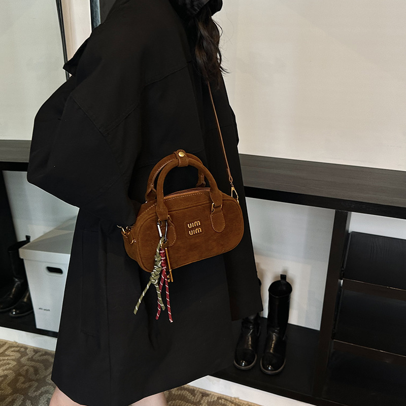 跨境秋冬季复古磨砂小包包女新款流行百搭斜挎包超火手提保龄球包