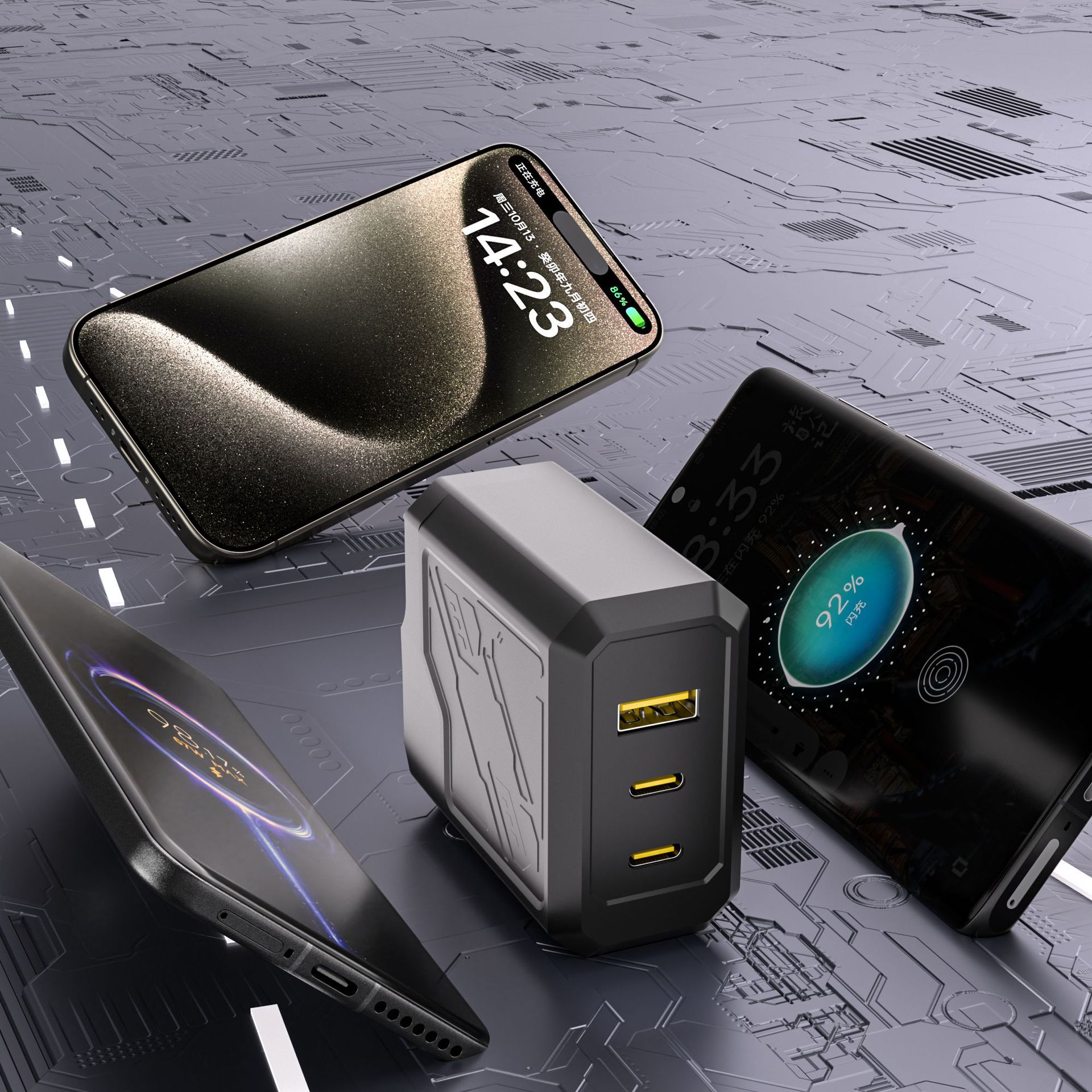 美规PD65W大功率GAN氮化镓充电器手机电脑笔记本闪充快充折叠插头