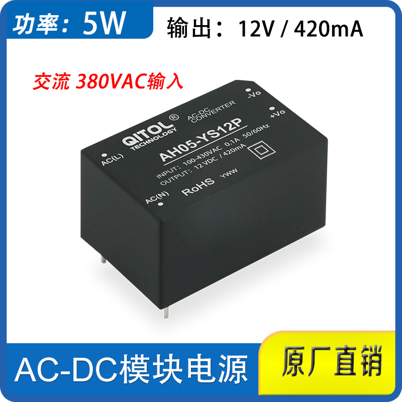 380V转12V电源模块5W,AH05-YS12P,12V420mA电机控制板AC-DC电源