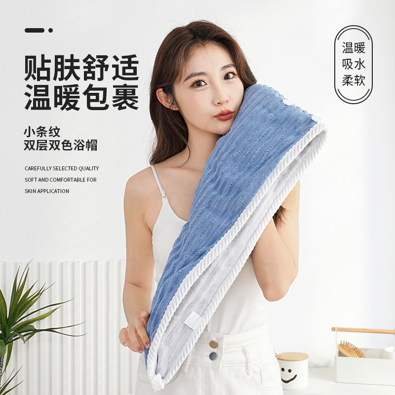 浴帽干发帽女款条纹加厚双层双色浴帽洗澡包头发快速干干发帽女