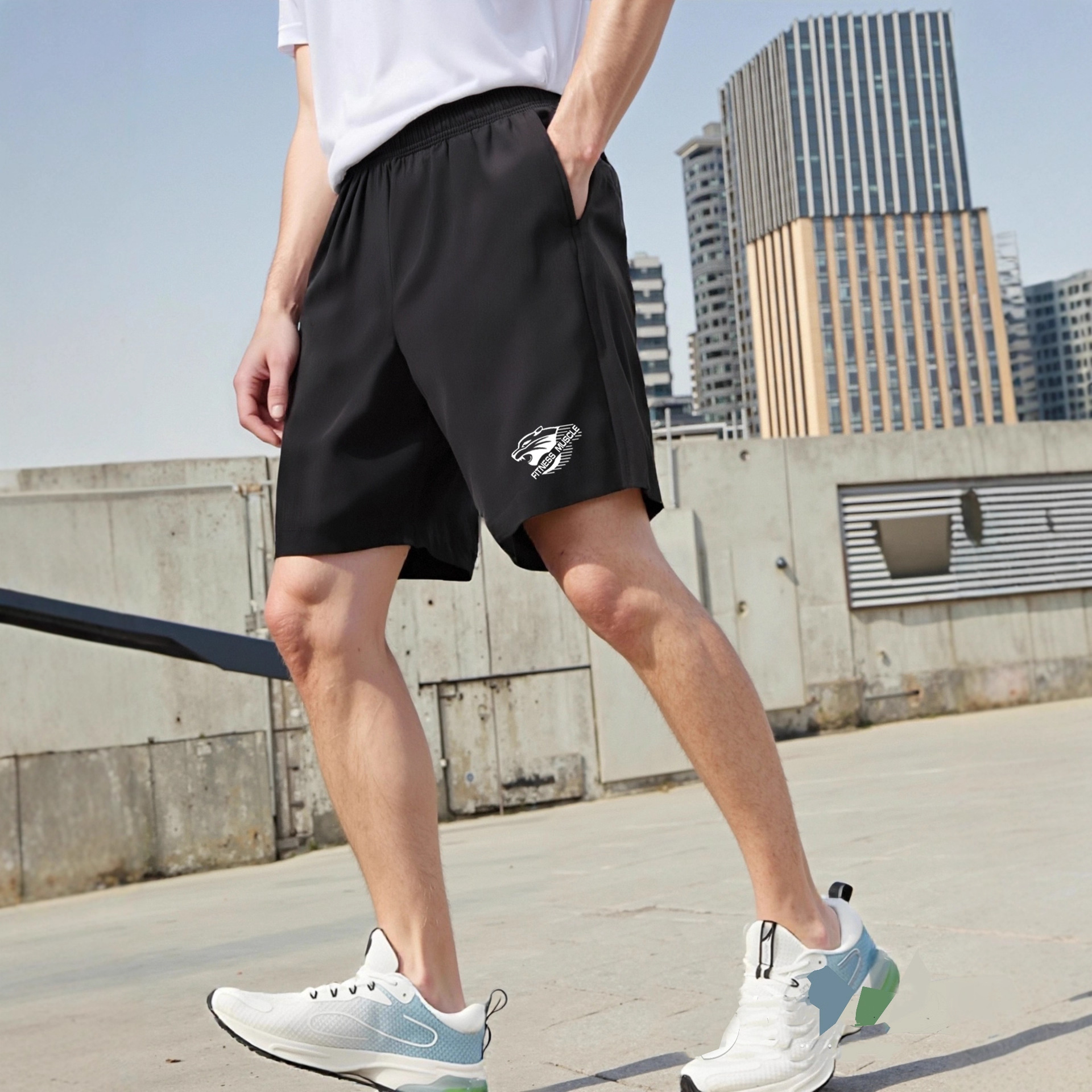 跨境男式运动短裤夏季速干透气跨境跑步短裤休闲健身运动印花短裤