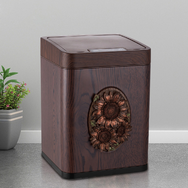 创意盖自动感应美式新中式复古家用智能客厅低带中式家用垃圾桶