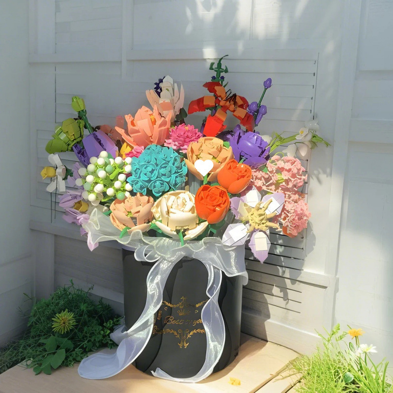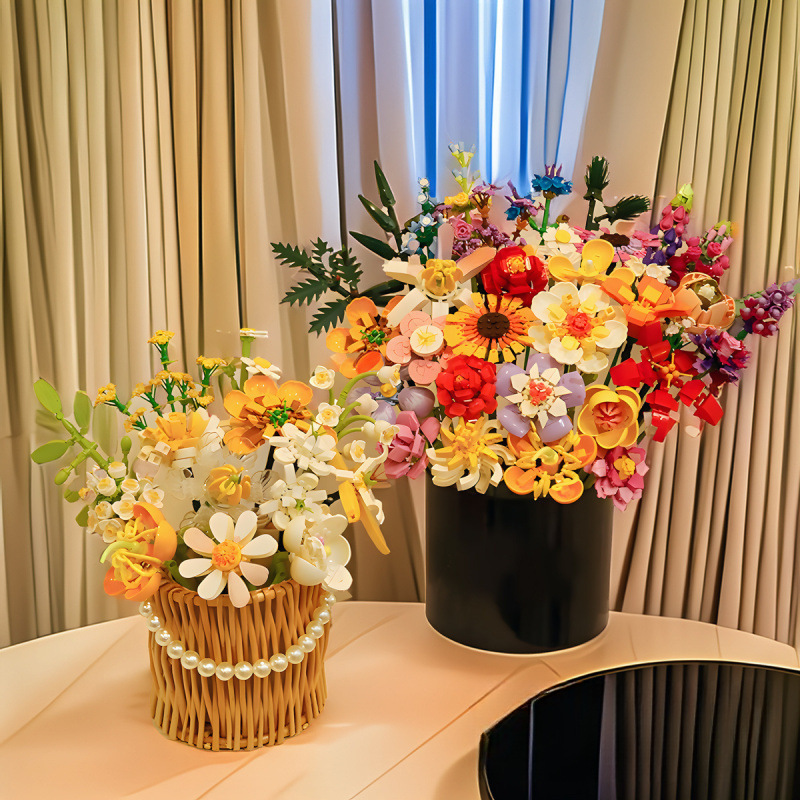 积木花朵拼装套装鲜花一整套花束玩具女孩生日女生摆件不带花盆