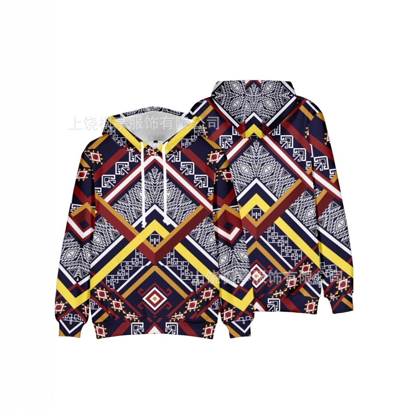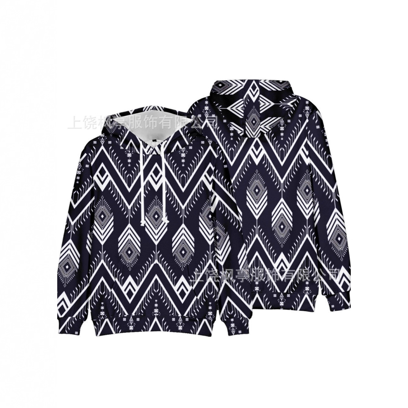 跨境热卖新款数码印花欧美几何图案圆领休闲连帽男士卫衣工厂直售