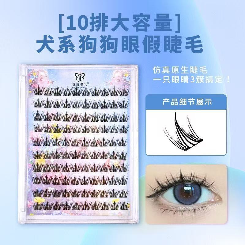 10排大容量懒人免胶自粘犬系假睫毛小奶狗超自然浓密仿真分段批发