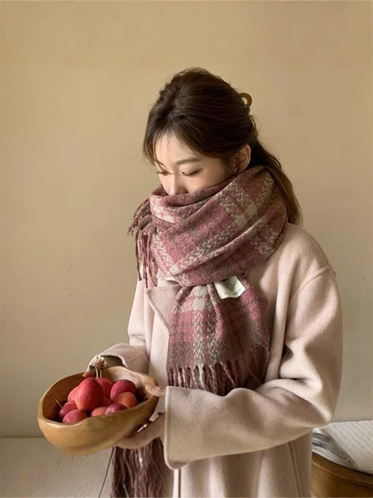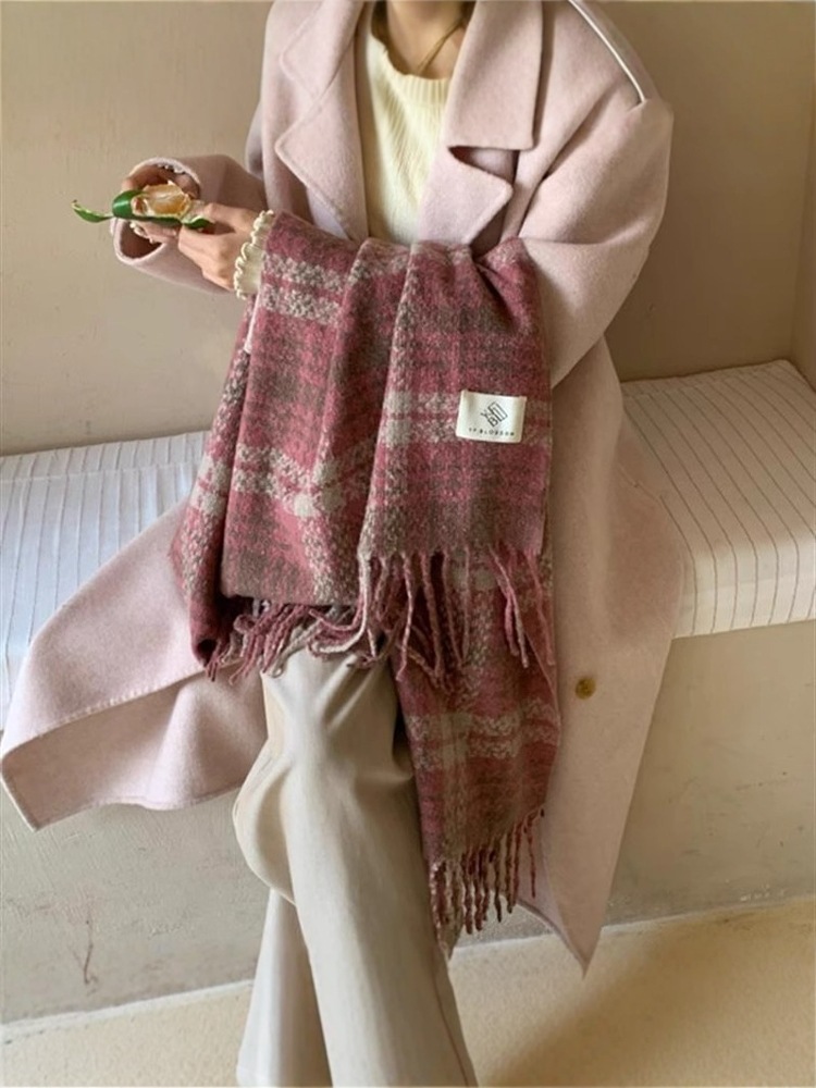 格子围巾女秋冬季2025新款干枯玫瑰粉色氛围感高级感百搭加厚围脖