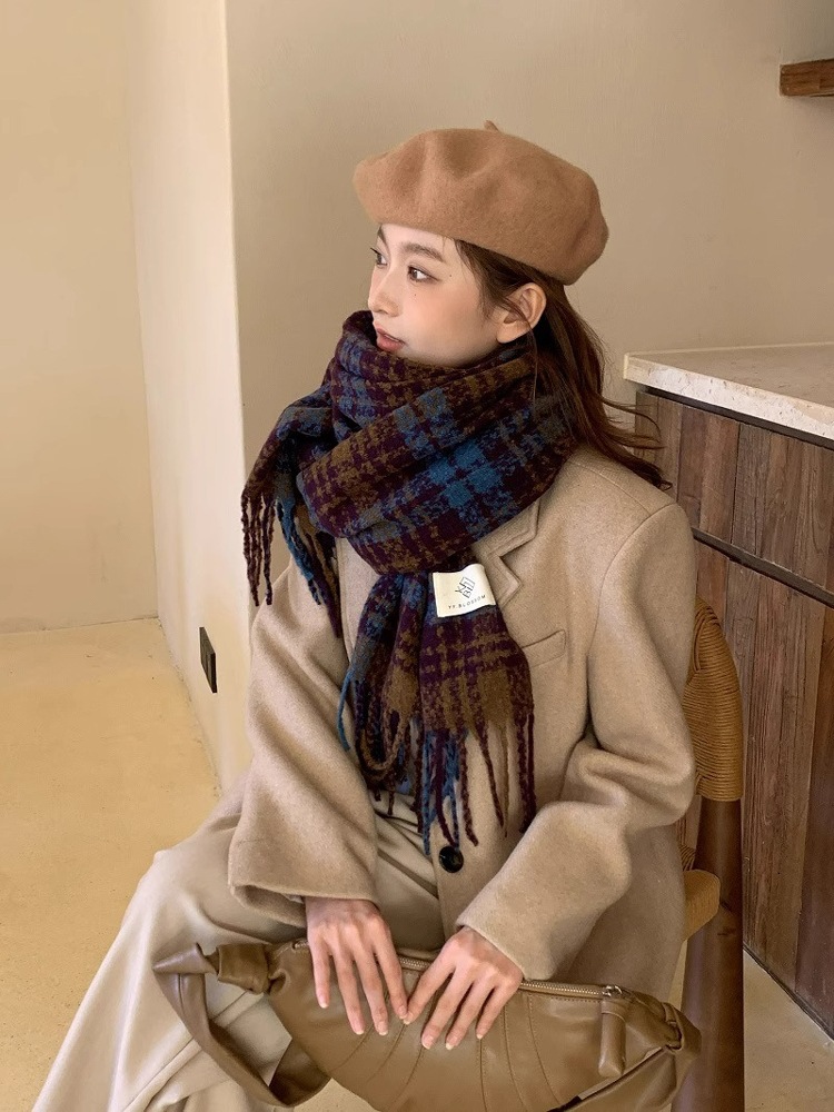 颜色蓝卡格厚款围巾【加厚升级面料】
